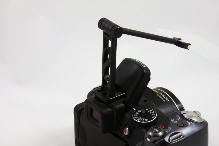 Рассеиватель крепится на башмаке камеры. Рассеиватель имеет специальный монтажный рычаг, который позволяет контролировать рассеивание света в гораздо большей степени, чем выдвижные рассеиватели старого типа.