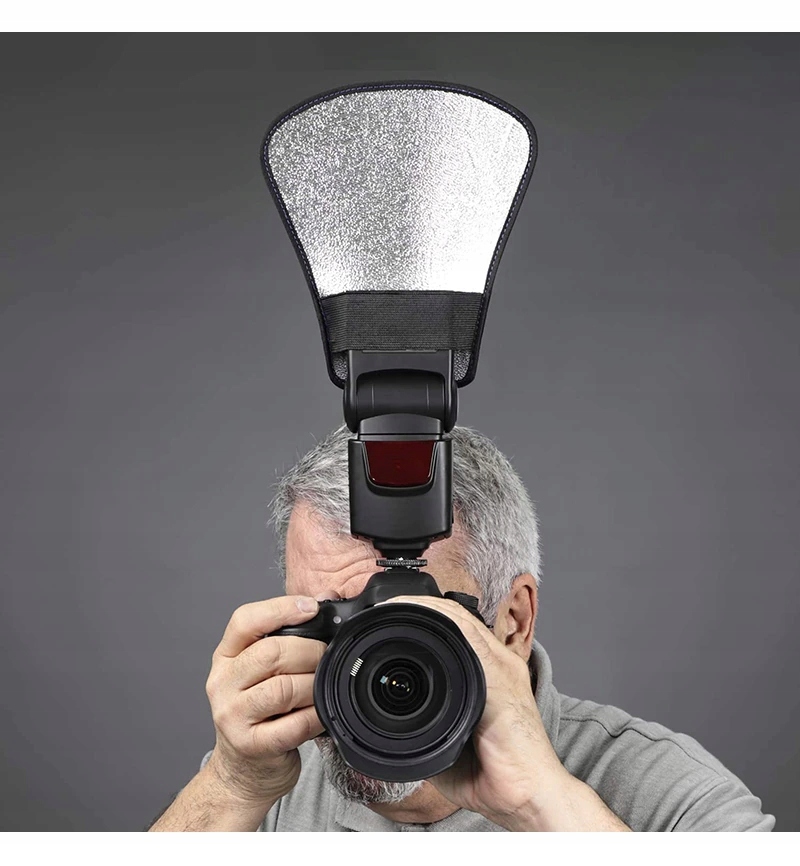 Отражатель универсален. Рассеивает и смягчает резкий свет вспышки, вызывая более ровное и естественное освещение.