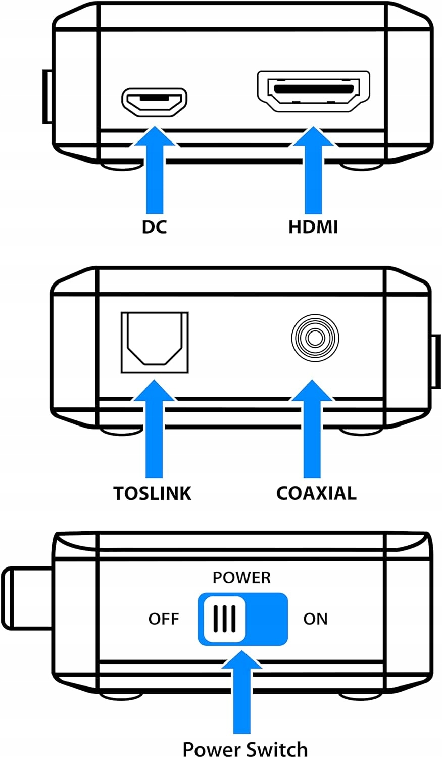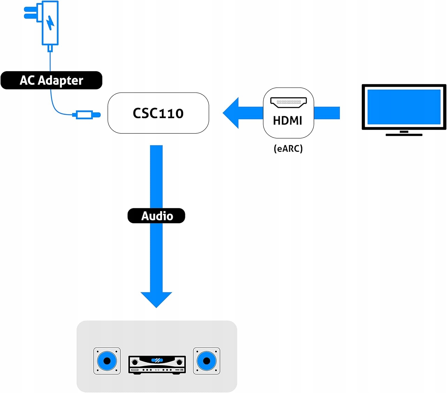 Преобразователь можно использовать для извлечения звука из спутникового телевизора, служб передачи потока, размытых, PS5 и X-Box Series X или любого другого устройства или сервиса, подключенного к телевизору с EARC/ARC. Телевизионный звук, чтобы привести звук из телевизионного порта телевизора. Убедитесь, что стартовым форматом является LPCM 2 Ch. Регулировка громкости возможна только через систему Hi-Fi, а не через телевизор