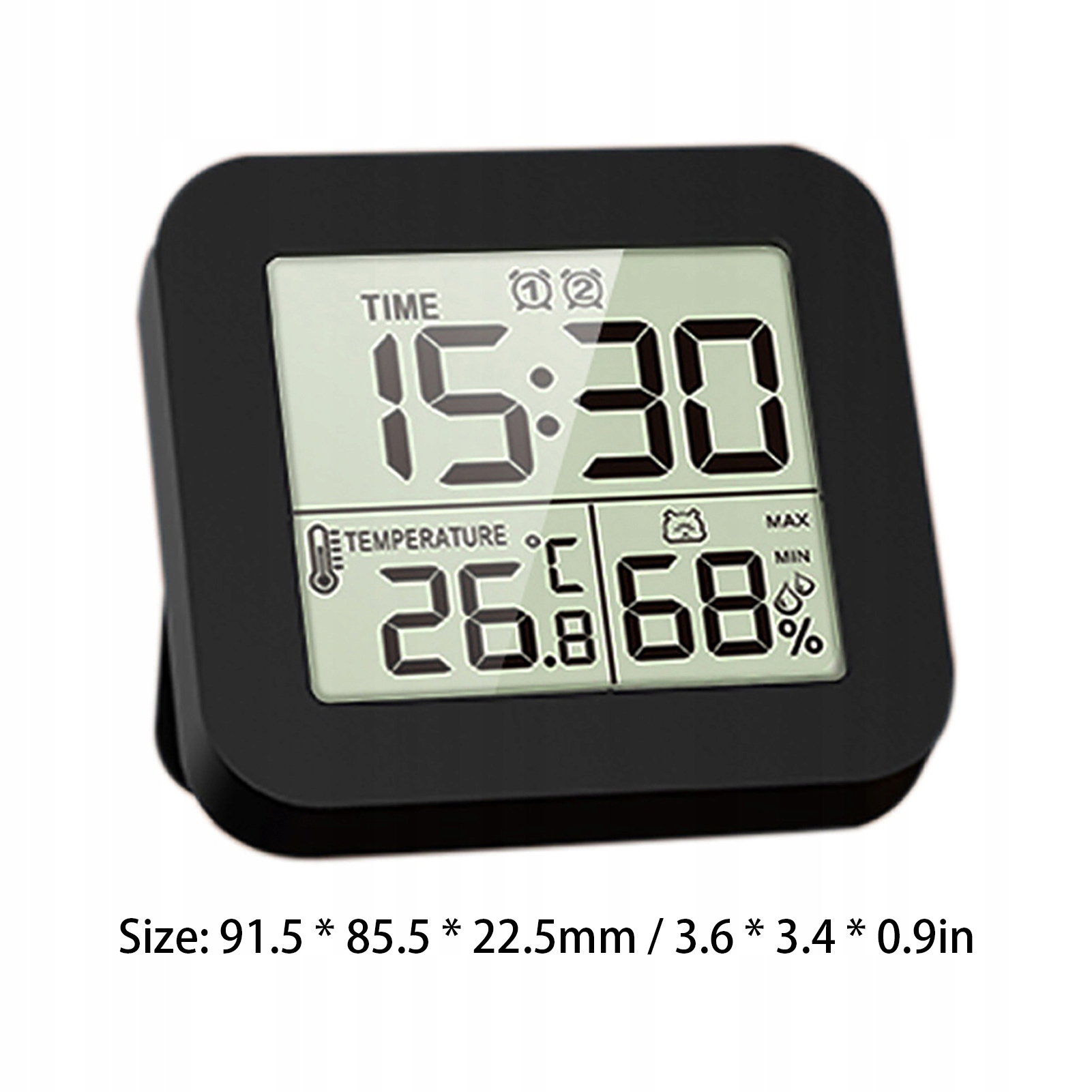 Спецификация: h2> - Это много -функциональные часы с большим ЖК -экраном, который одновременно отображает температуру, влажность и время. Он может установить два набора тревоги и может зацикливаться на время. Приблизительно компактный размер для удобной передачи.