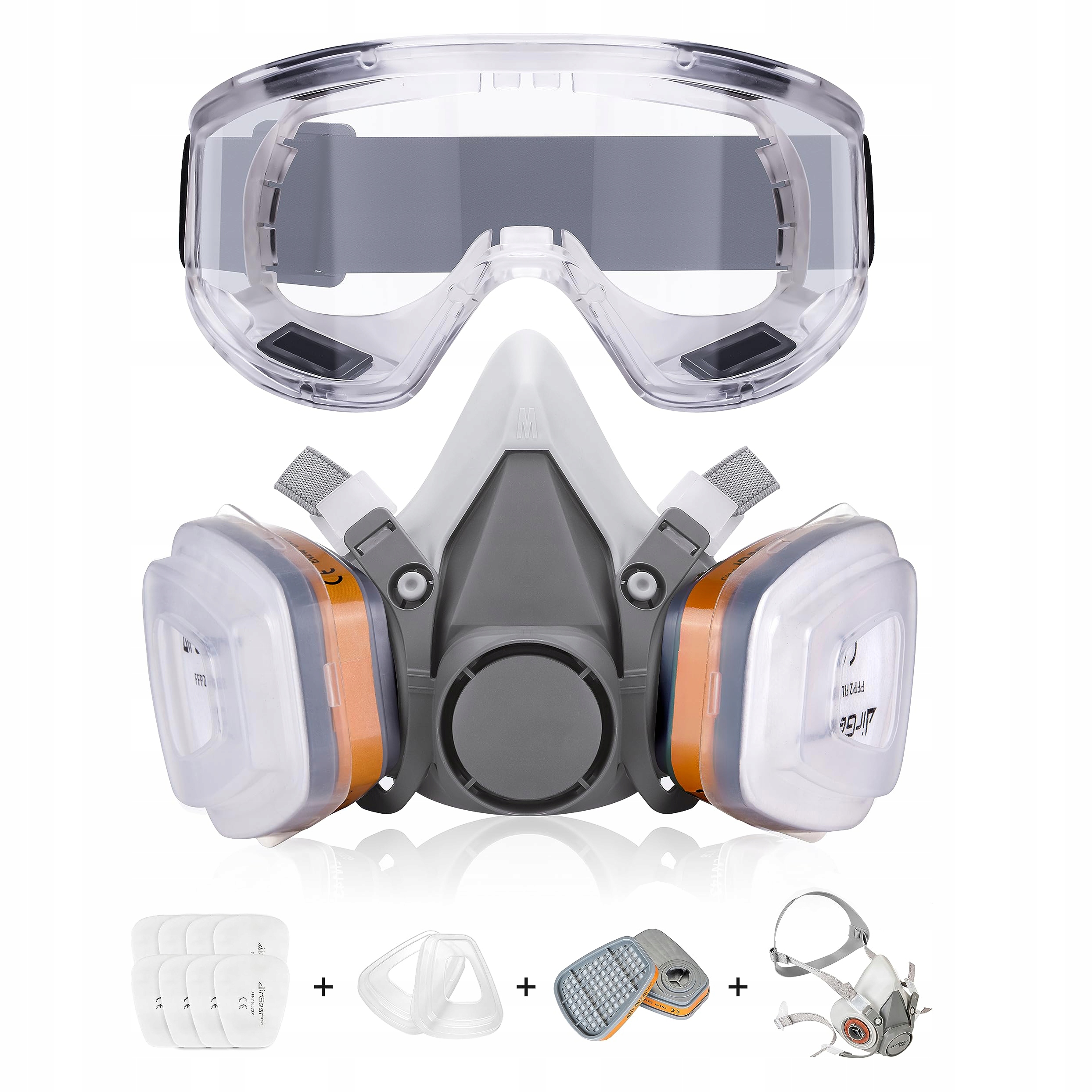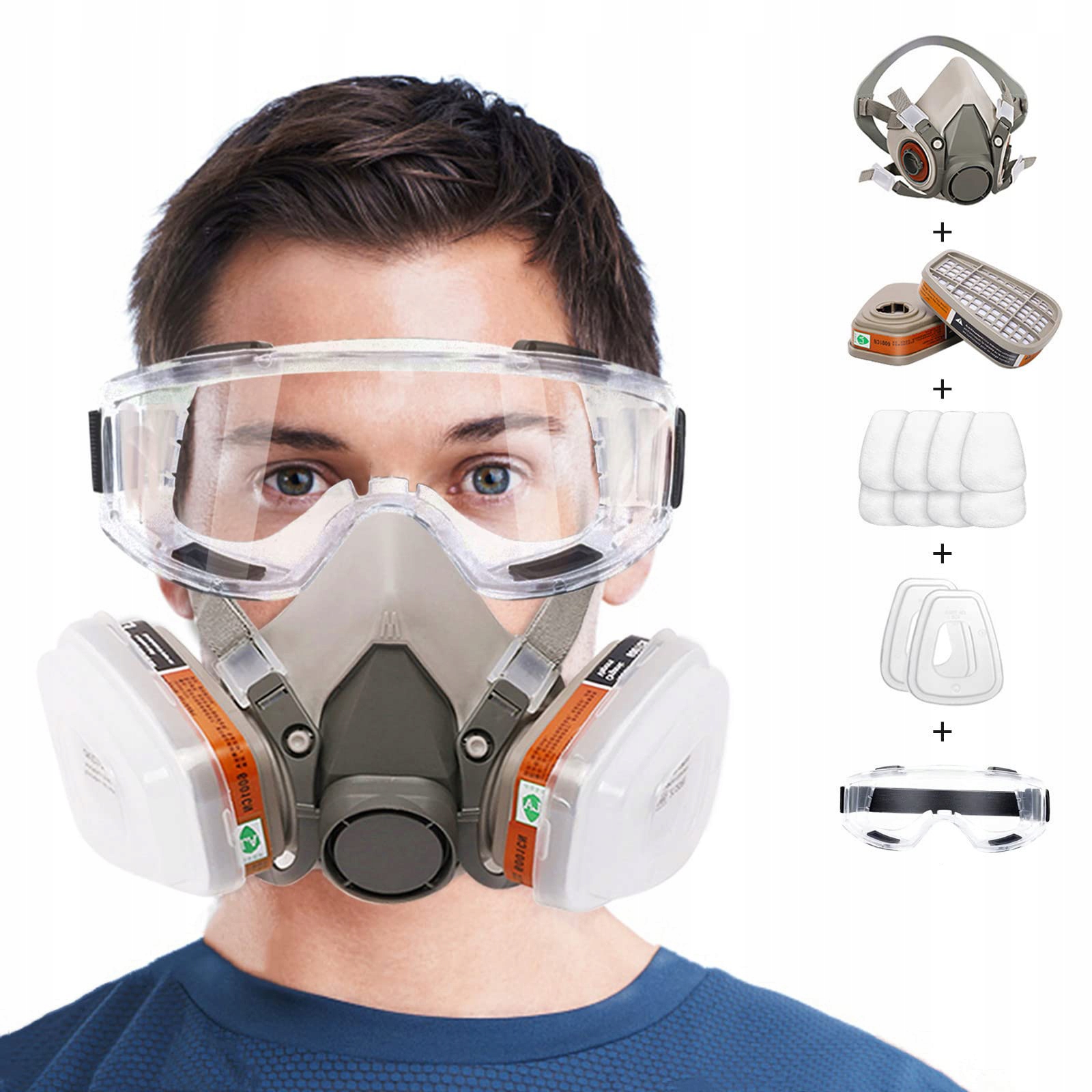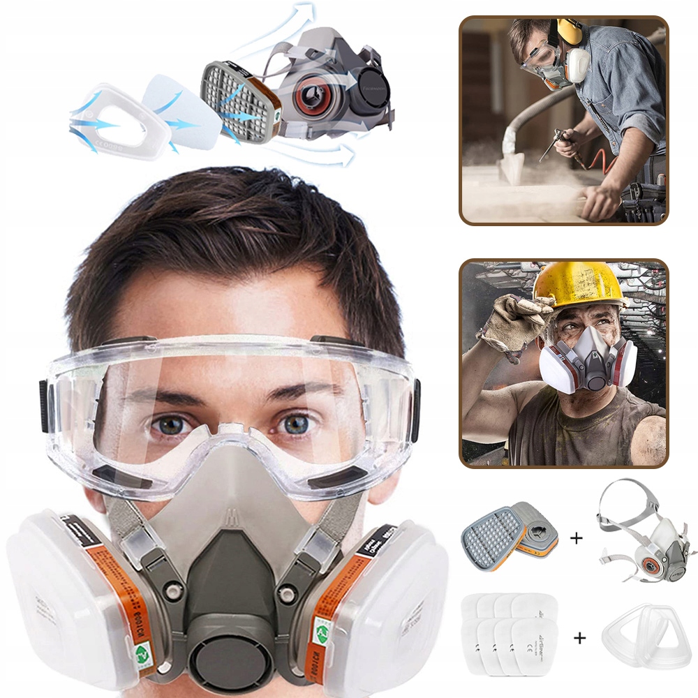 🥽【НАБОР МНОГОРАЗОВЫХ МАСОК ДЛЯ ДЫХАНИЯ】 Универсальная малярная маска с полузащитной маской, прозрачная защитные очки и сменные хлопковые воздушные фильтры — в этот комплект входит все необходимое для более безопасной работы с пылью и аэрозольными частицами.