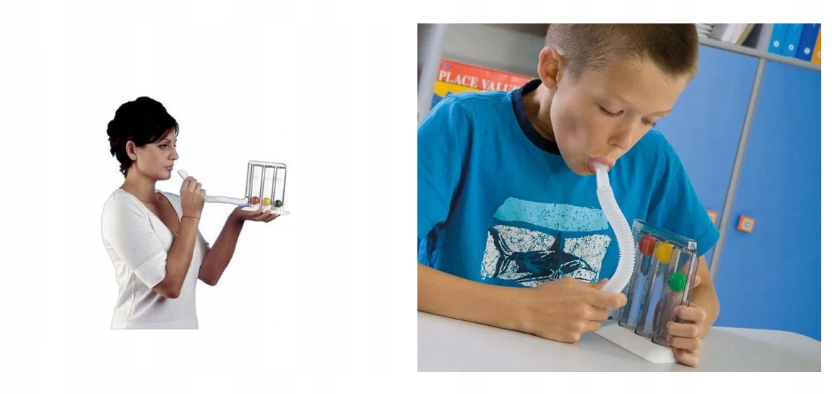 Спирометр — прибор, предназначенный для выполнения упражнений на глубокий вдох, усиливающих дыхание (вдох). Глубокое дыхание помогает расширить альвеолы и очистить дыхательные пути от мокроты.