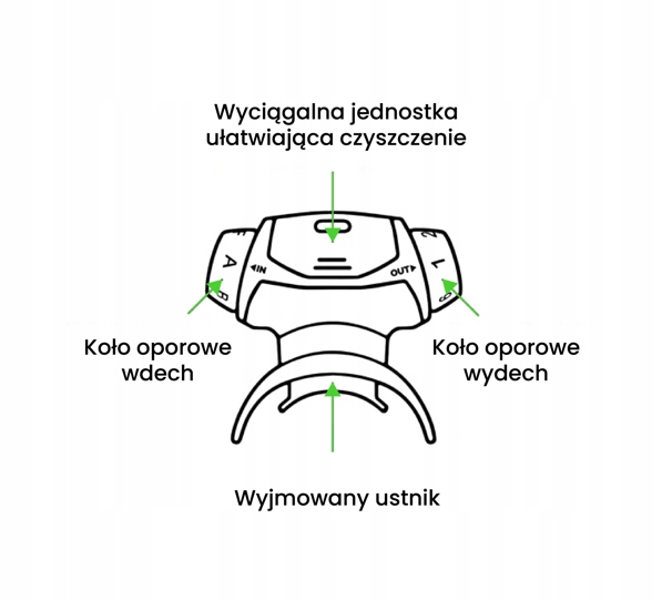 - Мундштук, который мягче, чем остальная часть тренажера для дыхания, и обеспечивает полный комфорт во время упражнений. Аккуратно согните края мундштука и поместите его в рот.