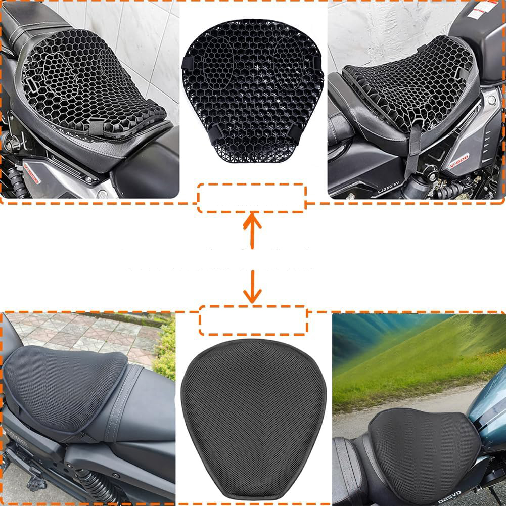 🏍 【Универсальный】 Мотоциклетная гелевая подушка мотоциклета универсально подходит Для большинства мотоциклов на рынке, с хорошей гибкостью, воздухопроницаемость, облегчение и амортизация, так что вы можете полностью испытать радость.