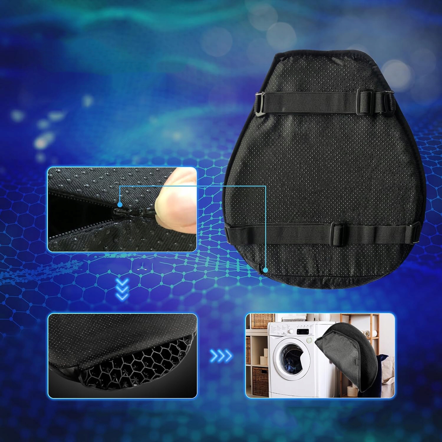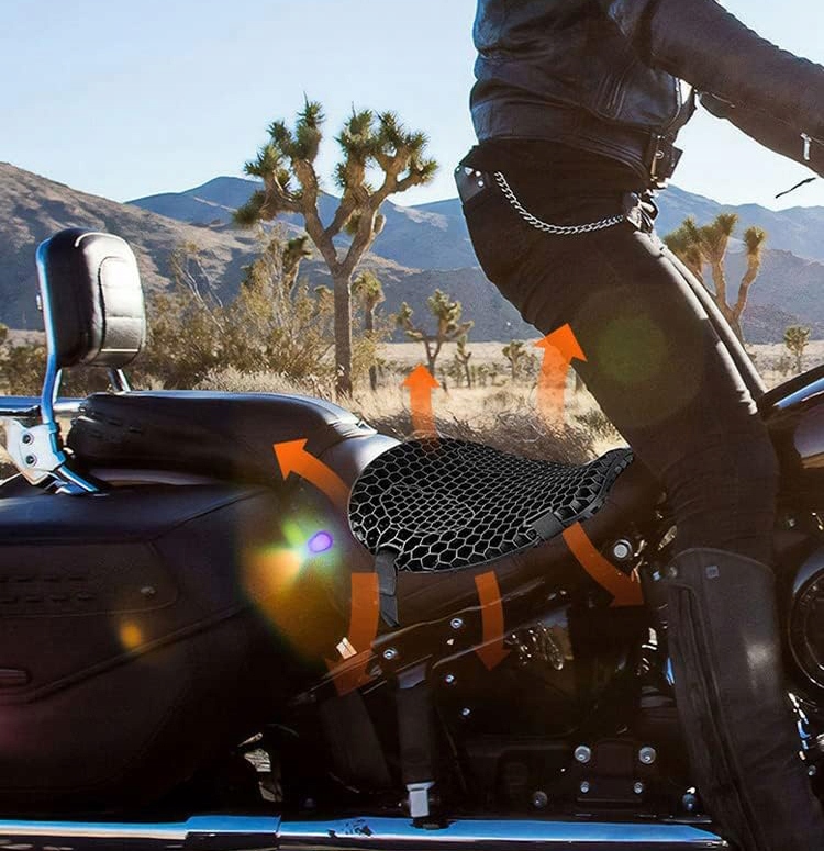 🏍 【Anty -Slip Design】 дышащий крышка сиденья мотоцикла Имеет не -скользящие частицы внизу, а двойные ремни закрепляются спроектирован с падающими крючками, так что не Вы уже должны беспокоиться о том, что подушка для сидения легко перемещается