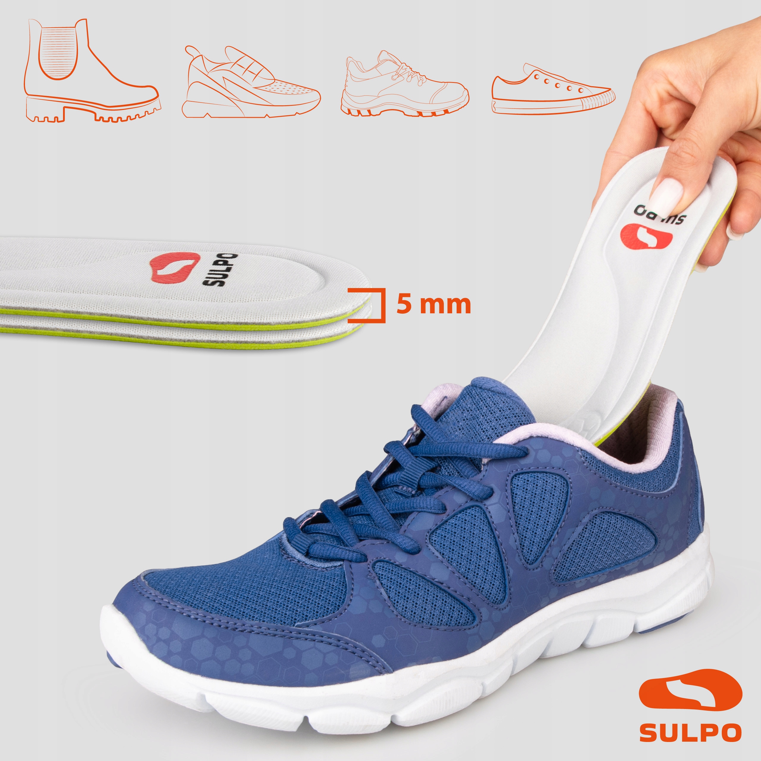 Независимо от того, работаете ли вы физически, совершаете длительные прогулки, тренируетесь или путешествуете – стельки SULPO обеспечат вашим ногам комфорт и защиту. Эффективно впитывают влагу, нейтрализуют неприятные запахи и сохраняют их свежесть даже после интенсивного использования. Их мягкая, гибкая структура обеспечивает комфорт в течение всего дня - в любых условиях и в любой обуви. Это универсальная поддержка для всех, кто ценит комфорт, гигиену и функциональность.