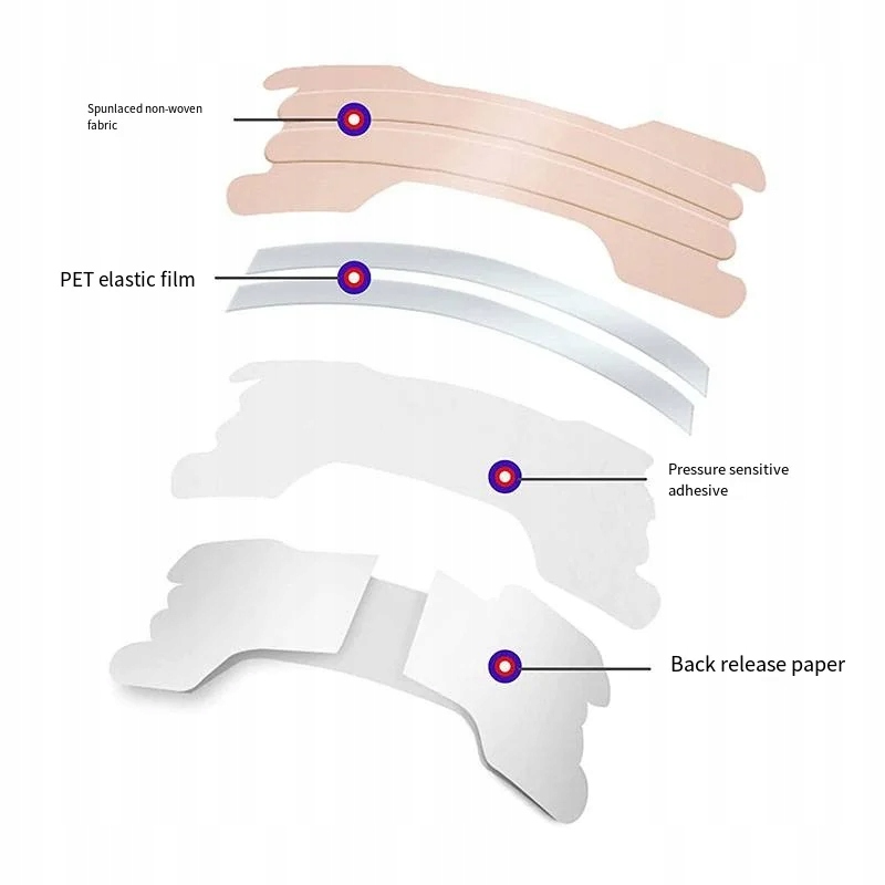 ⏺2. Он состоит из пяти частей: Spunlace неткат, чувствительный клей, гибкий материал, основной материал и задний наклейка.