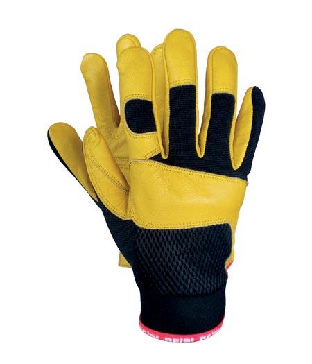 - Защитные перчатки из высококачественной козий кожи в сочетании с тканью. Фенкальная козья кожа в желтом.