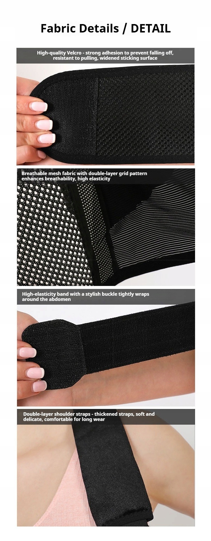 4. Высокоэластичный пояс: Имеет стильную пряжку, обеспечивающую точную, но удобную поддержку живота с равномерным распределением давления.