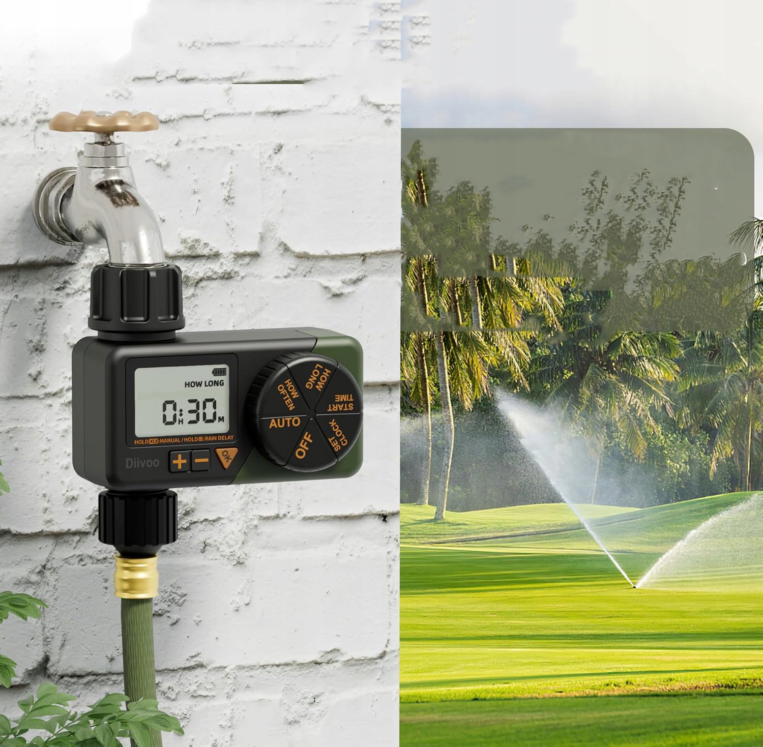 ☑️Увлажнение по времени и циклично: С помощью таймера гидратации Diivoo вы можете поливать в определенные дни. Вы можете установить время начала, время полива (от 1 минуты до 3 часов 59 минут) и частоту полива (от каждого часа до каждых 12 часов или от каждого дня до каждых семи дней, включая только четные или только нечетные дни). Таймер полива Diivoo обеспечивает большую точность изменения потребности в поливе!