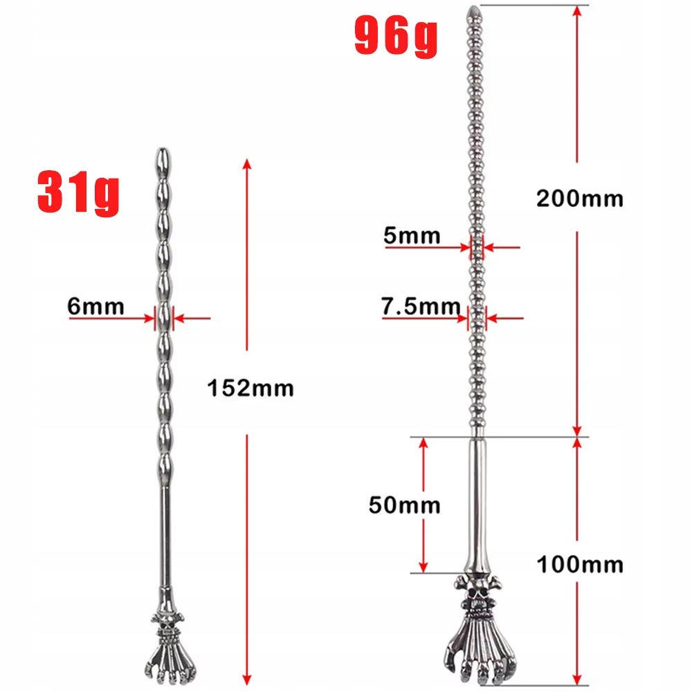 DILATOR do cewki moczowej stalowy pręt ręka kościotrupa czaszki 15cm x 6mm