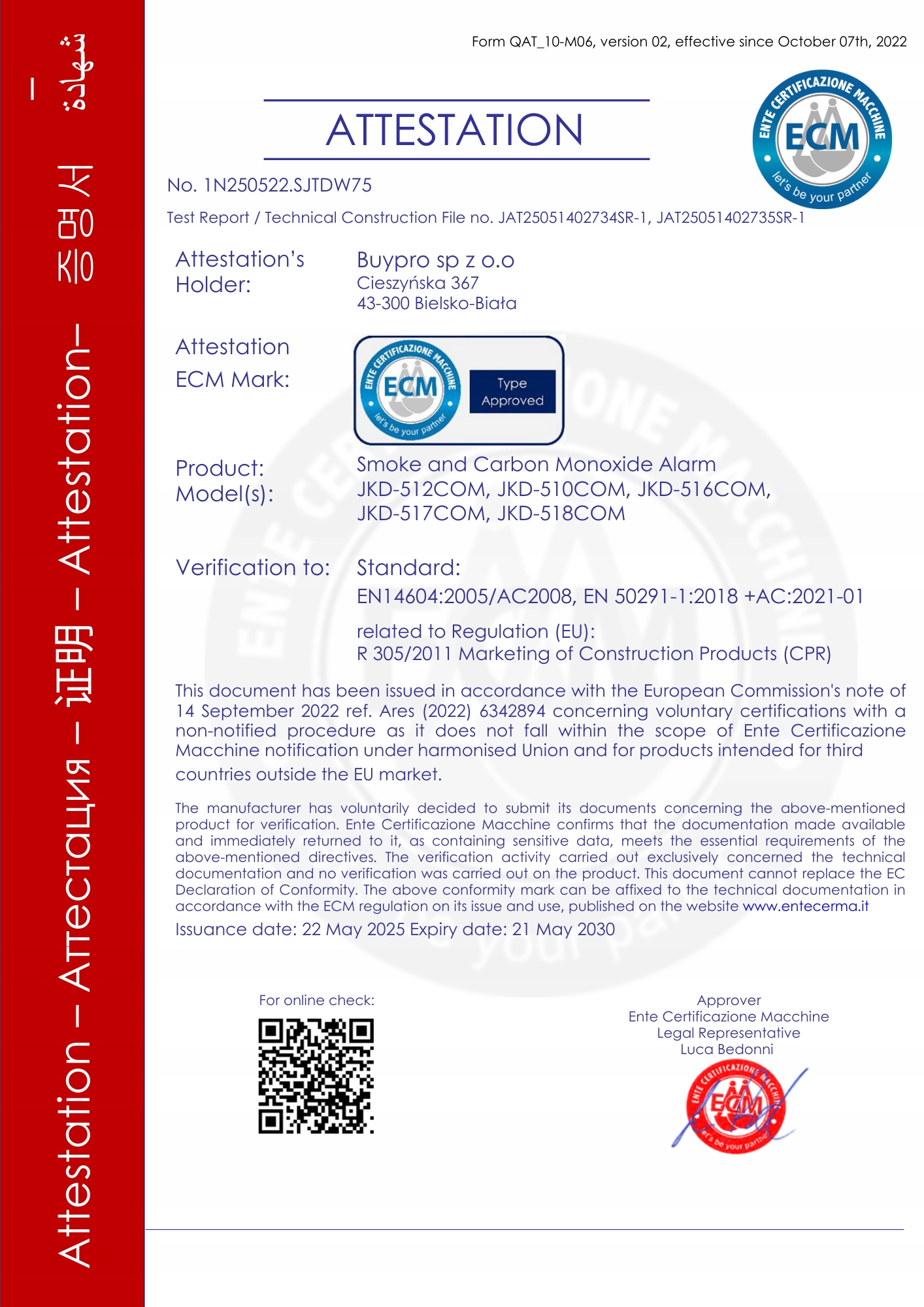 ✅ соответствует стандарту EN14604:2005 для детекторов дыма и стандарту EN50291-1:2018 для датчиков угарного газа