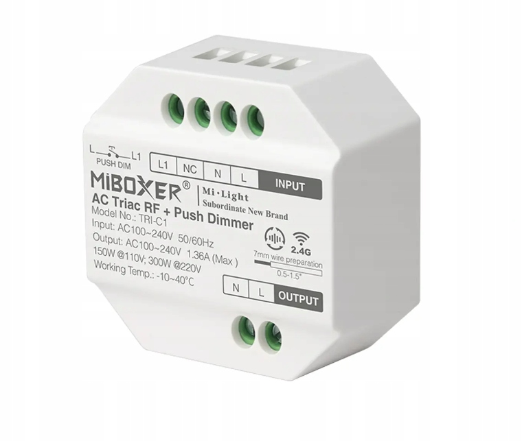 реле реле Miboxer Tri-C1 от Miboxer/Mi-Light, позволяя вам контролировать радиополовое освещение (традиционные лампы на лампе, светодиодные луковицы с выключательными или галогенными лампами) с одним из пилотов, указанных ниже Miboxer/Mi-включения или используемых пулеметов (E.g. Dright (E. D-Sweptees (E. D-Sweptees (E.g (E. D-Sweptees (E.G. Miboxer/Mi-Light K1). Устройство обеспечивает бесплатное затемнение в диапазоне 0-100%.