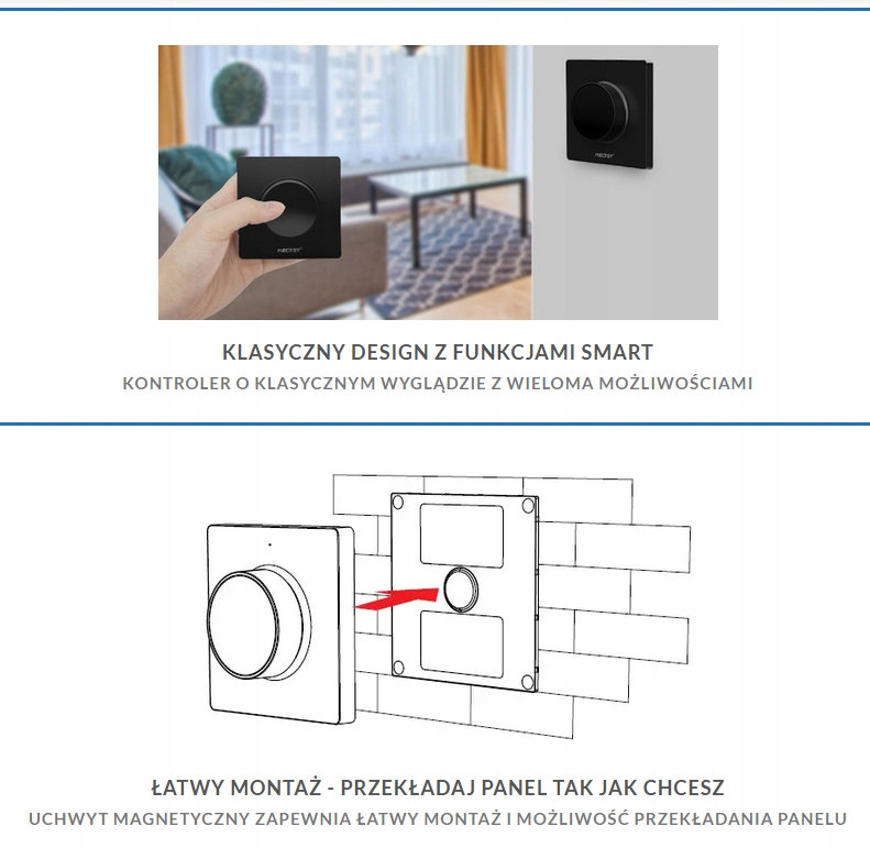 Поворотный диммер Mi-Light K1-B — это контроллер, который можно закрепить в любом месте на стене с помощью магнитного держателя. Он может успешно работать как стандартный выключатель света, но также позволит