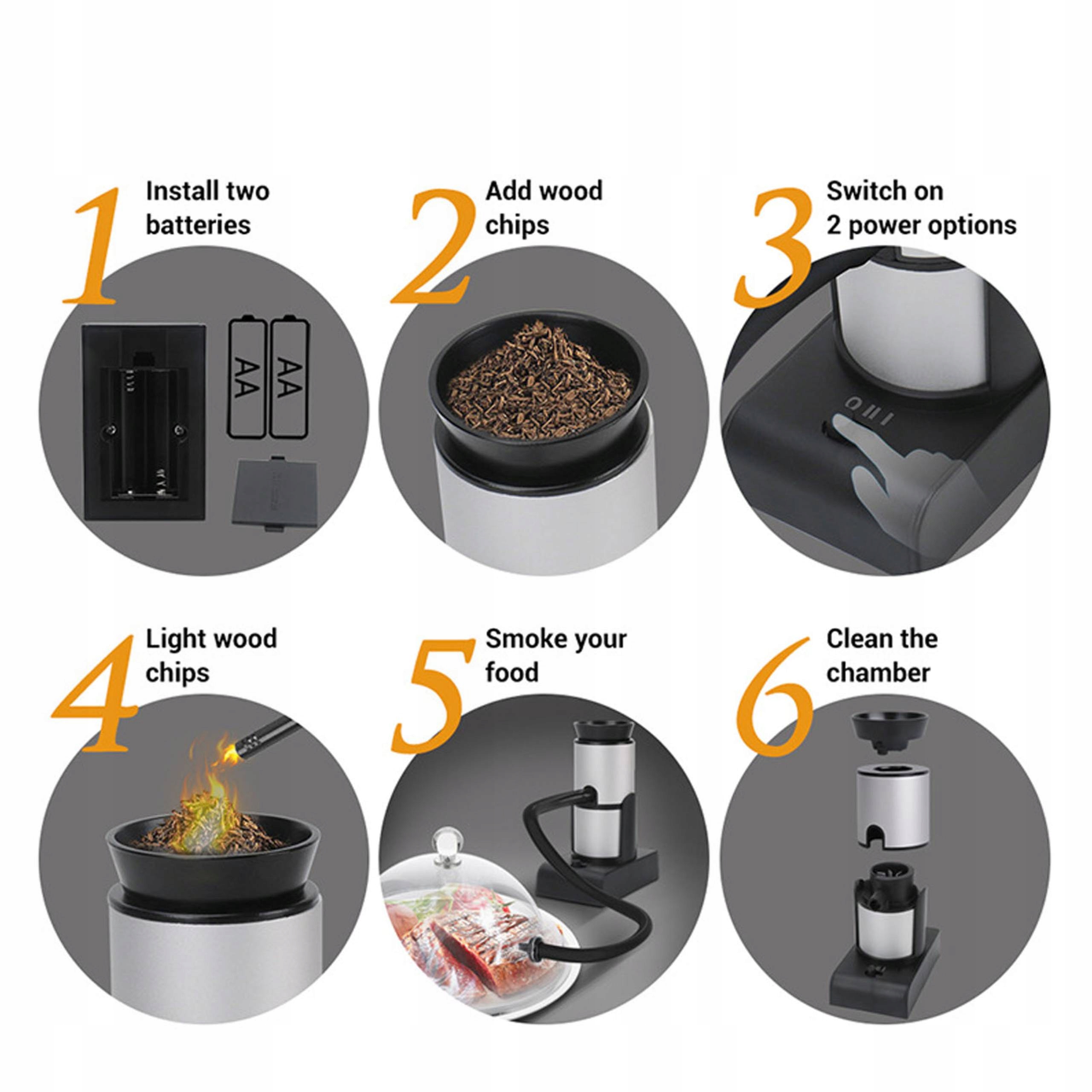 Список упаковки: 1 X Food Smokehouse (батарея не включена) 1 x отвертка 1 x шланг 1 x щетка 2 x Фильтр 1 x Инструкция 1 x сопла