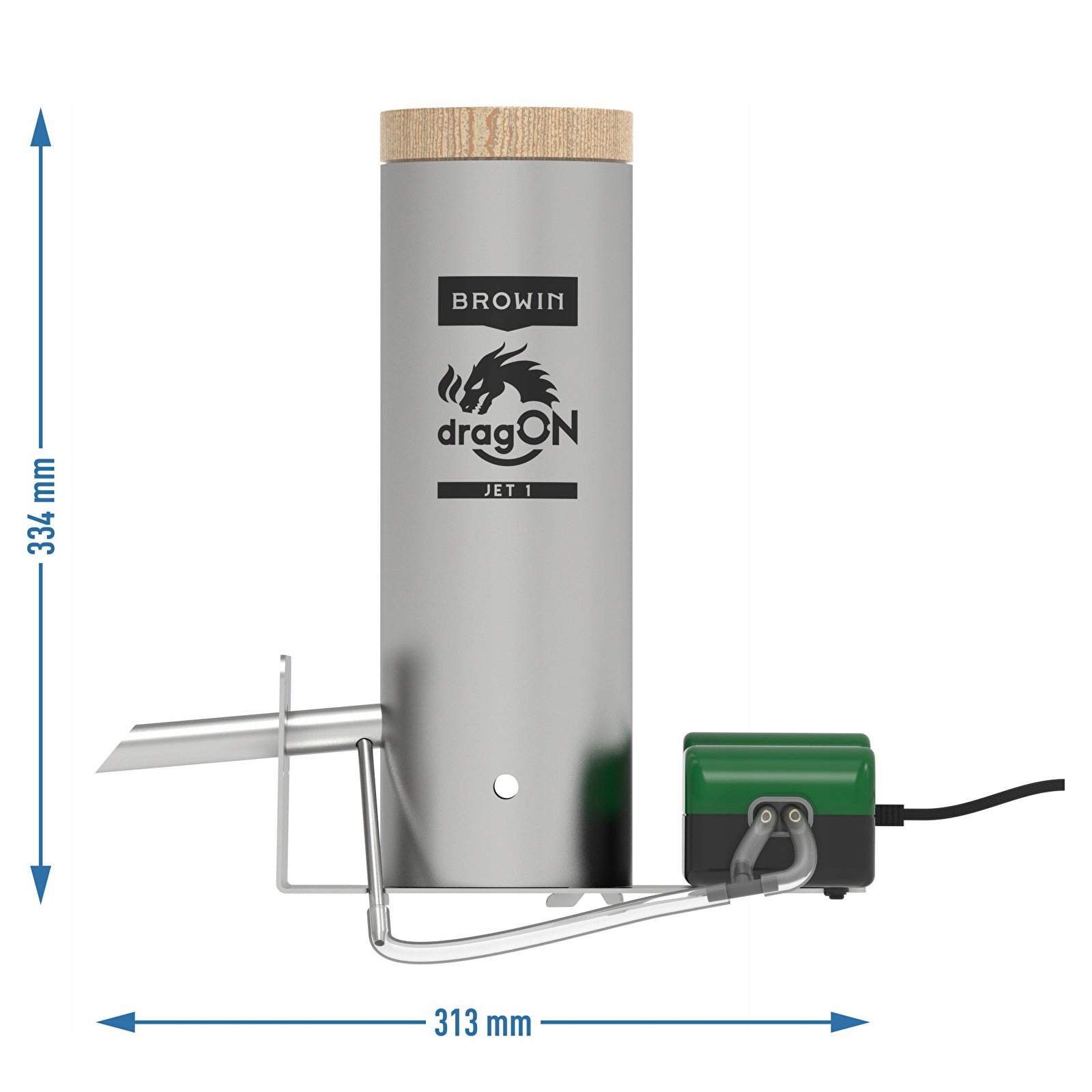 - Эффективный электронасос с регулировкой расхода воздуха, оптимизирующий эффективность сжигания щепы – забудьте о висящей щепе! Размещая насос на специальном монтажном основании, вибрации, создаваемые насосом, передаются непосредственно в камеру сгорания, улучшая падение стружки во время процесса ее отжига. Эффективность насоса можно регулировать с помощью ручки, регулируя количество дыма в соответствии с потребностями и объемом коптильни.