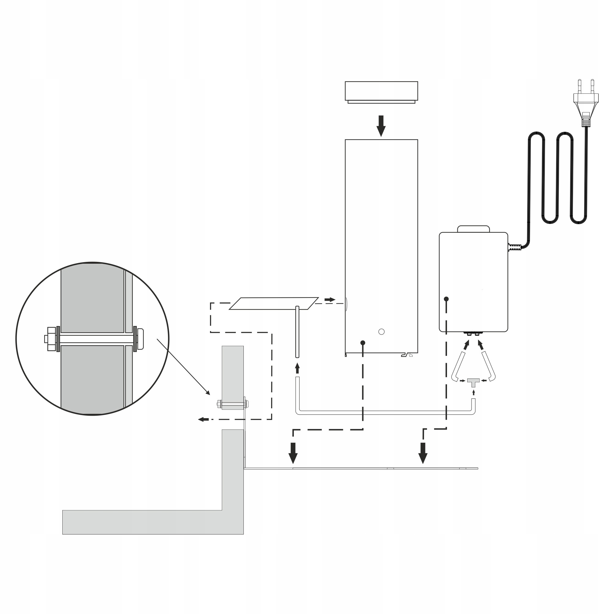 - комплект подключения (тройник, клапан, силиконовые шланги)