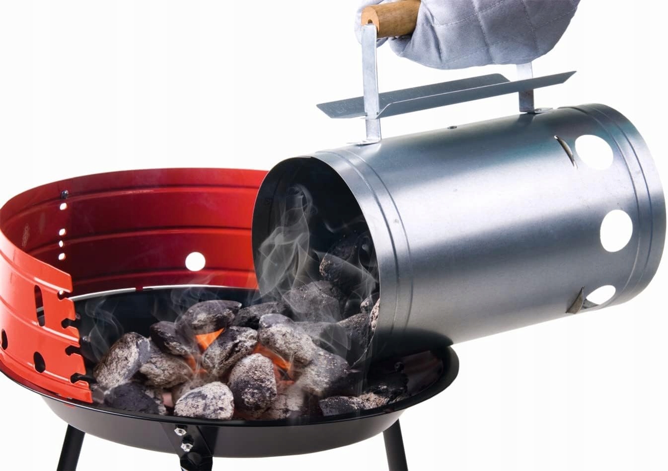 Металлическая ручка помогает легко поднять и наклонить начало дымохода. Защита гарантирует, что уголь не достигает руки маленького тепла