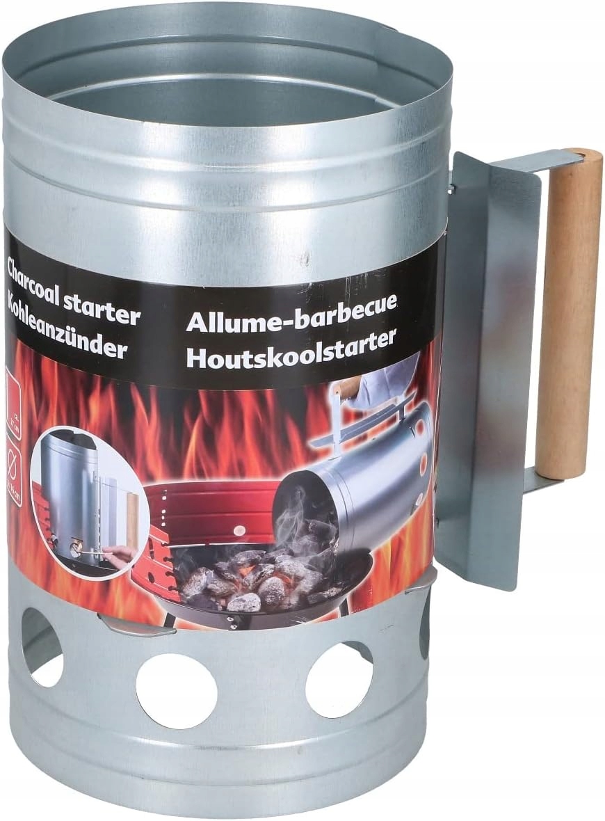 Легкий угольный гриль и стартер гриля, прочная нержавеющая сталь и деревянная ручка. Подходит для использования со всеми типами древесного угля, включая комки и брикеты
