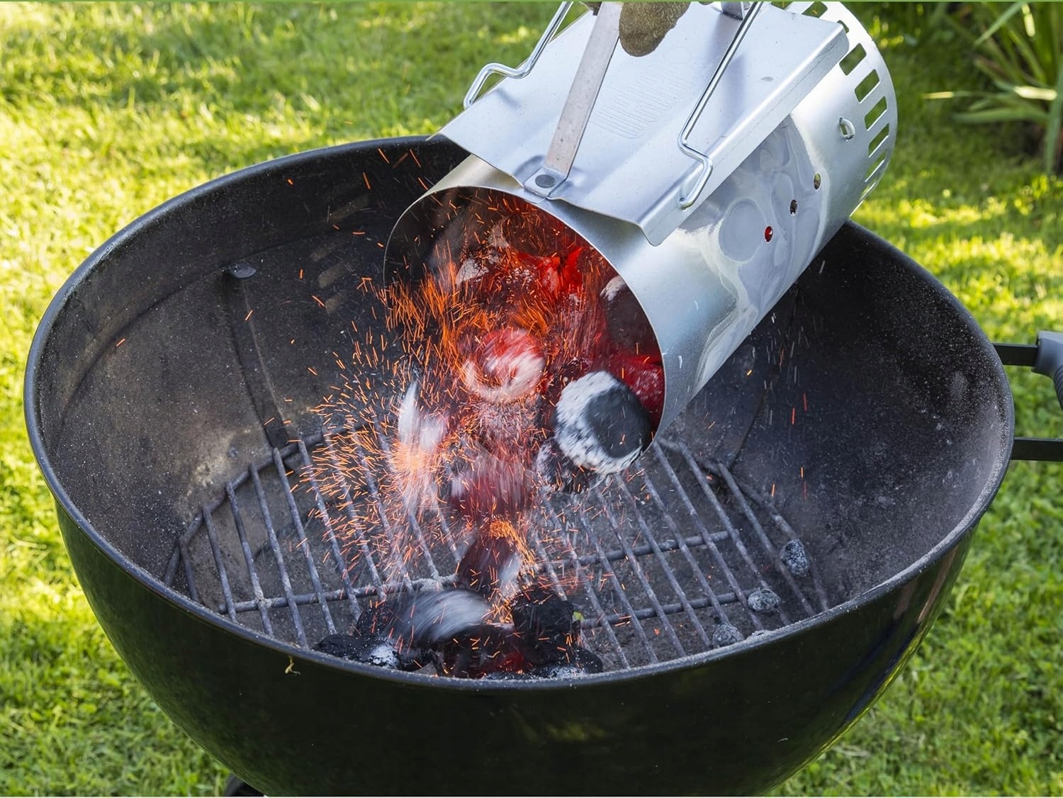 Практическая система двух ручек позволяет некоторую перенос и точную заливку светящегося угля на решетку - без риска ожогов или рассеяния.