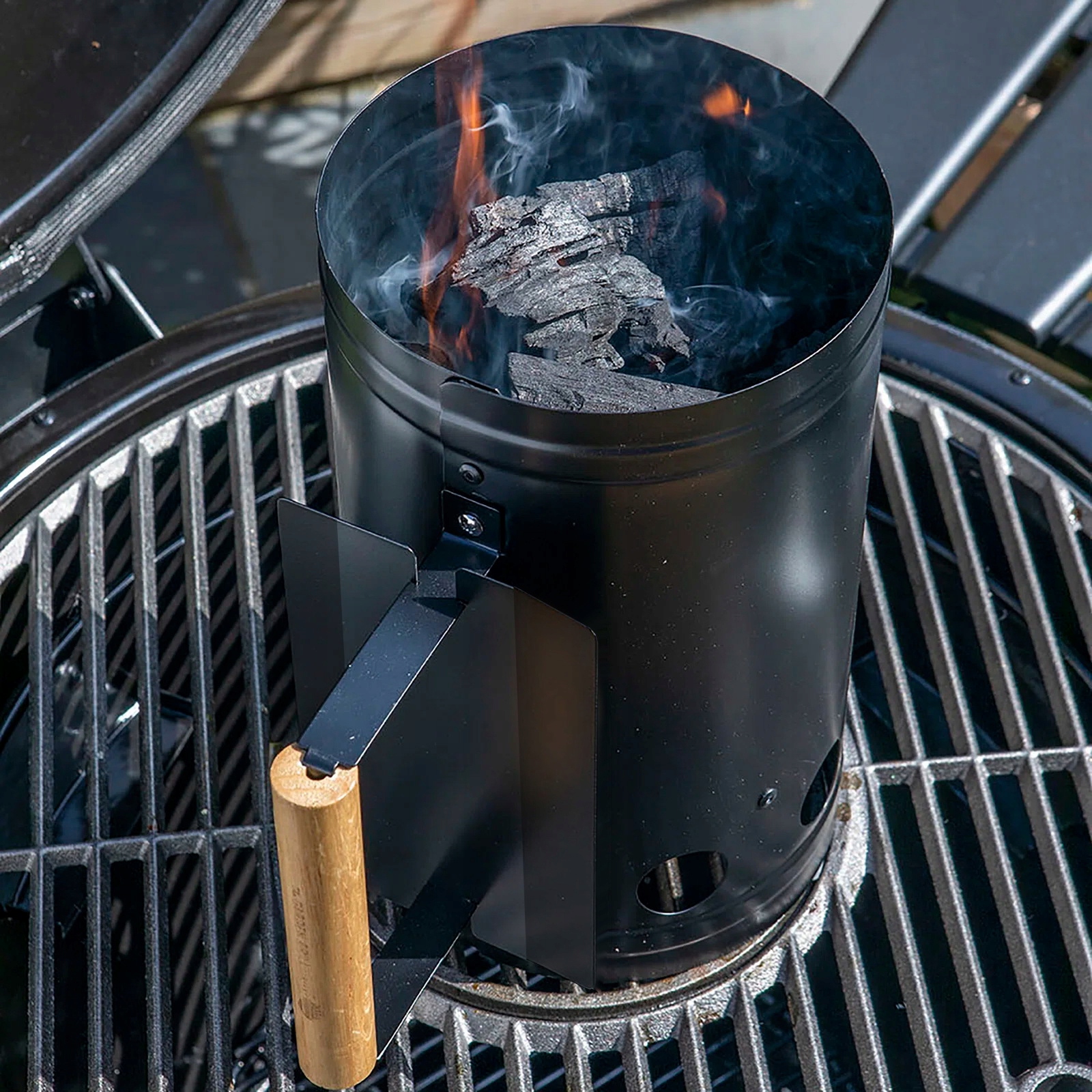 После розжига угля /брикеты, просто наклоните дымоход и сильным движением вылейте содержимое в гриль. Больше не нужно устраивать импровизированные «пирамиды» из угля или разжигать огонь. Дымоход позволяет полностью расслабиться и спокойно приготовить барбекю в приятной атмосфере.