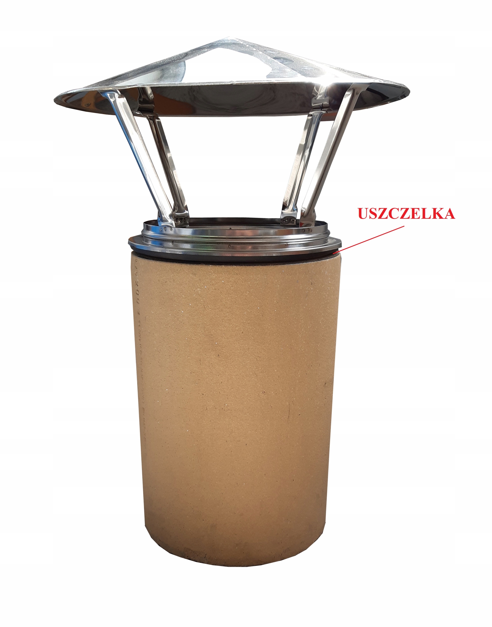 предназначена для системной керамической вставки. Согнутые зубы после прижатия в керамику, эффективно блокируют возможность вытягивать крышу. Край с печатью над ручками гарантирует герметичность на линии крыши - вставка дымохода. Нижний рукав с ручками меньше, благодаря которой он всегда будет вписаться в керамику.