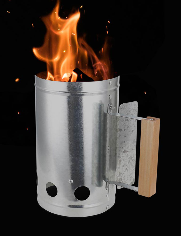 Стартеризготовлен из оцинкованного металла, а деревянная ручка позволяет крепко держать его и избежать ожогов.