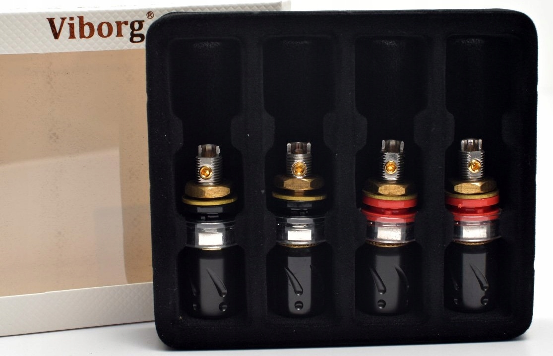 Высочайшее качество акустических клемм Viborg BP603R. Контактные элементы из чистой меди, покрытые слоем родия.