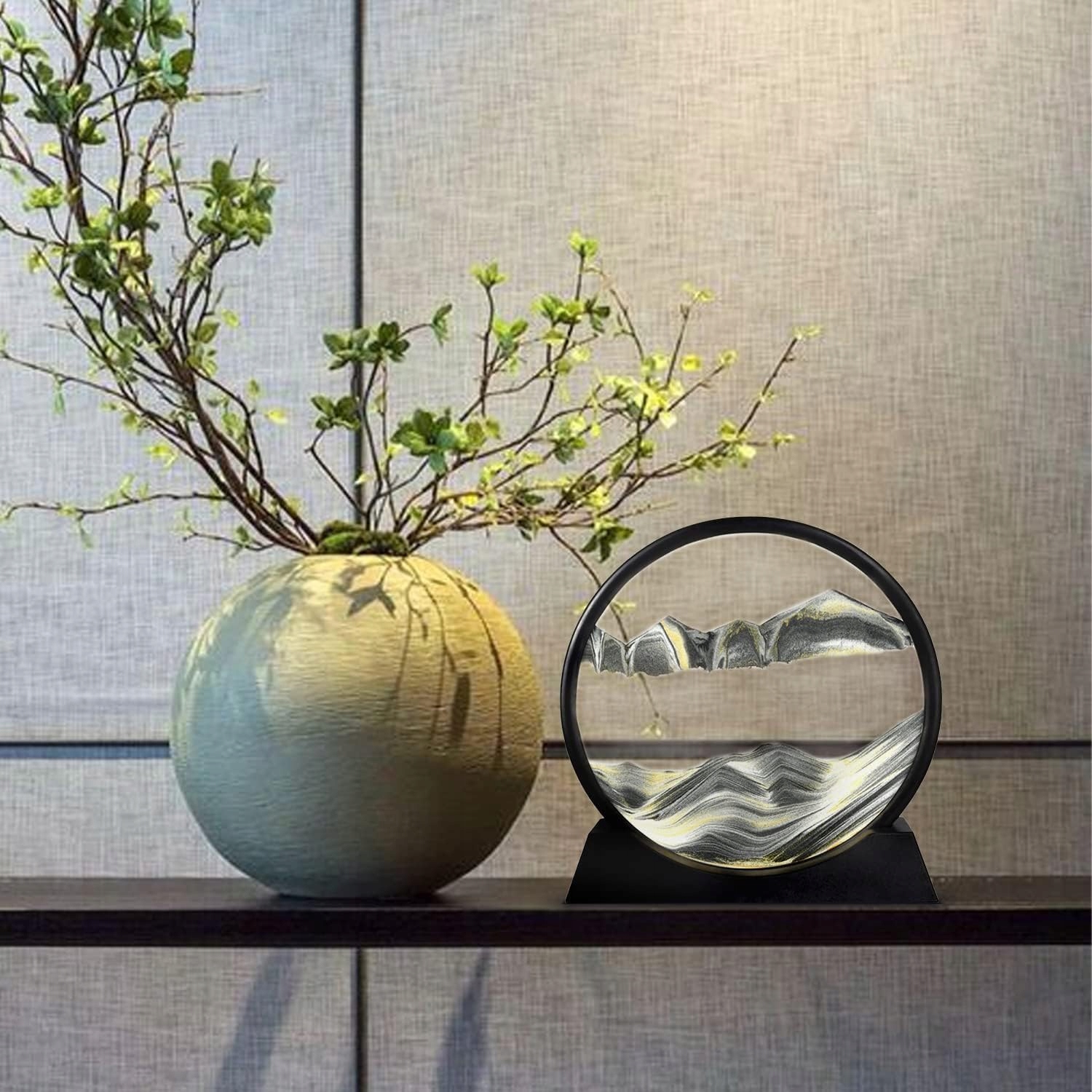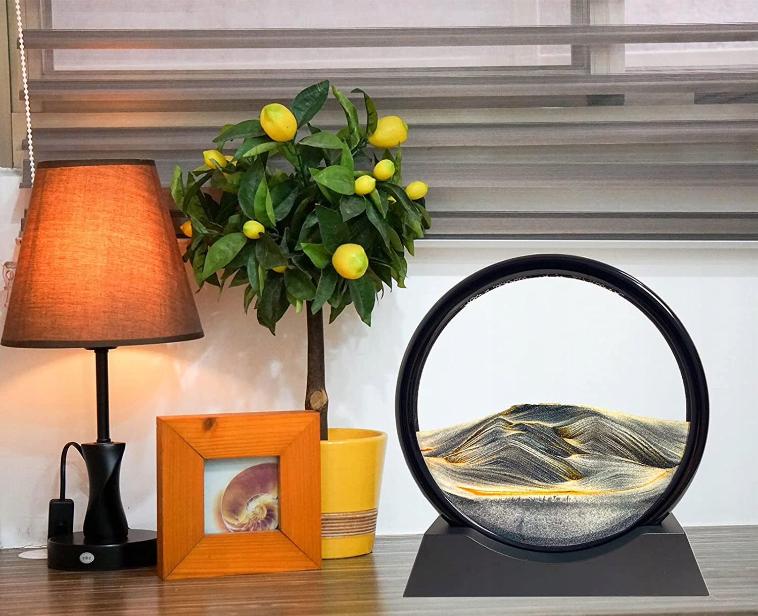 - Песочная картина может вращаться на 360°, при каждом повороте песок начинает двигаться, появляются естественные пейзажи.