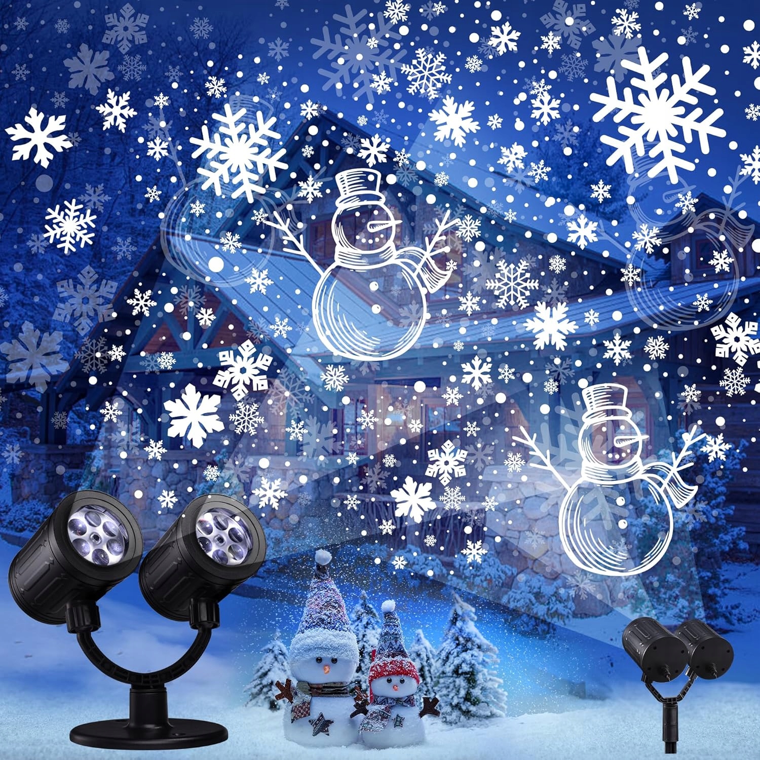 ДИНАМИЧЕСКИЕ СВЕТОДИОДНЫЕ СНЕЖИНКИ, ПРОЕКТОР СНЕГОВИК С ТАЙМЕРОМ, ДВОЙНОЙ ГОЛОВКОЙ