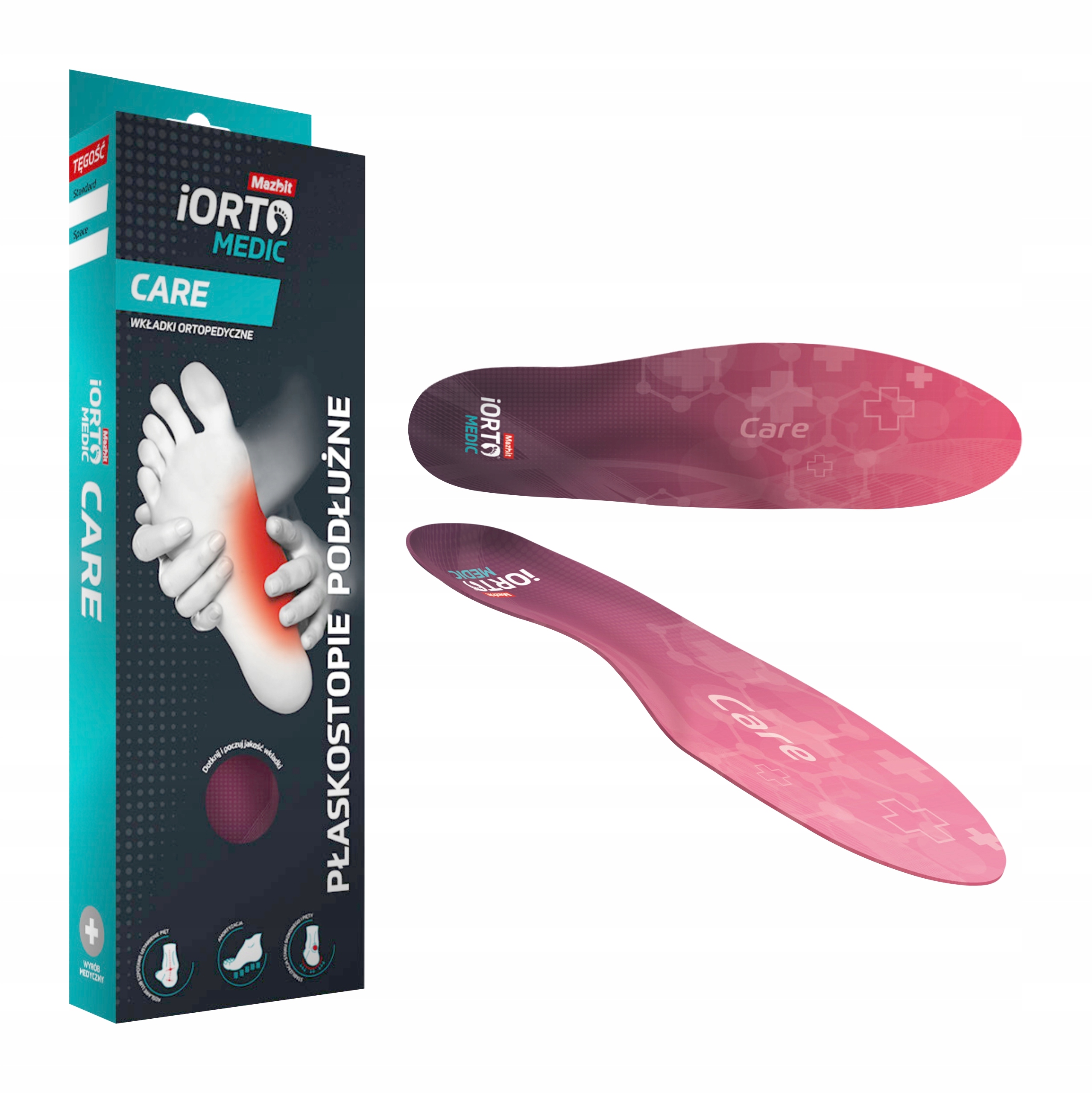 Современные, динамические ортопедические стельки iORTO Medic Care Продольное плоскостопие — медицинский продукт высочайшего качества от польской компании Mazbit. Стельки iORTO MEDIC Care предназначены в первую очередь для людей с диагнозом продольное плоскостопие, вальгусное или варусное плоскостопие, а также для тех, кому требуется стабилизация. пятки и голеностопного сустава (например, после травмы голеностопного сустава). Благодаря своей структуре, обеспечивающей динамическую поддержку продольного свода стопы, она не только уменьшает симптомы заболевания, но и устраняет его причину.