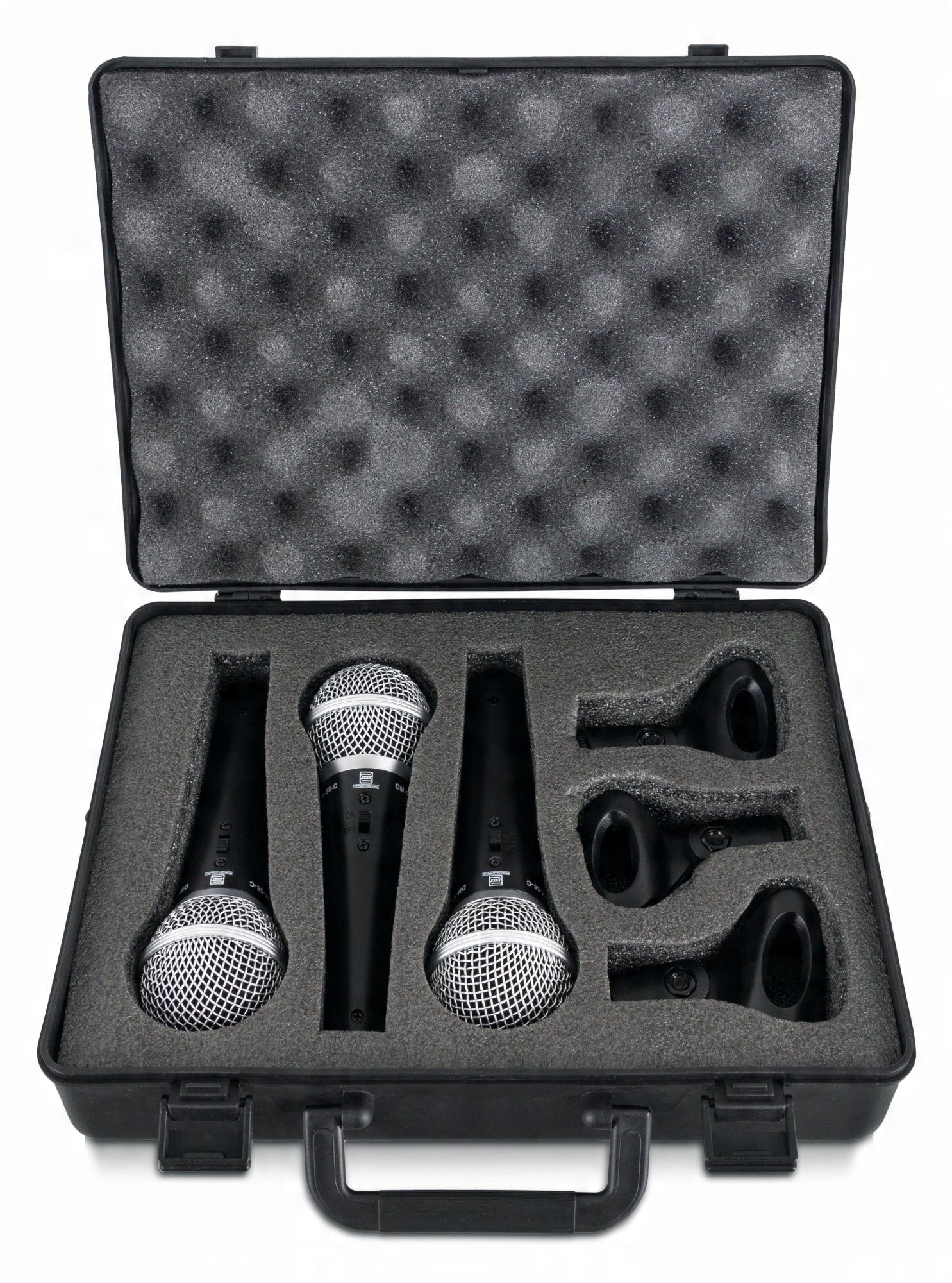 Набор вокальных микрофонов в чемодане, 3 динамических микрофона с характеристиками кардиоида, превосходным направлением и обратной связью демпфирования, переключателем/переключателем, включая зажимы микрофона с резервной нитью, в практическом чемодане с пеной.