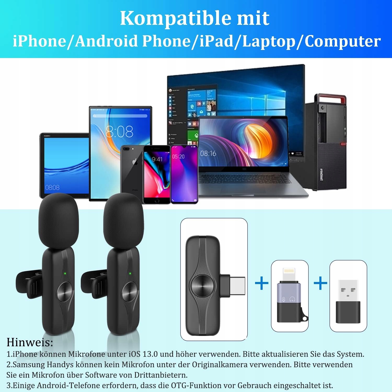 - Мини-микрофон оснащен чипом шумоподавления, обеспечивающим четкую запись даже в шумной обстановке. Беспроводной микрофон с режимом отключения звука. Если вы не хотите записывать звук, кратковременно нажмите кнопку включения/выключения, чтобы активировать режим отключения звука. Беспроводной микрофон поддерживает функцию реверберации, функция Холла улучшает полноту звука и лучше адаптируется к окружающей среде.
