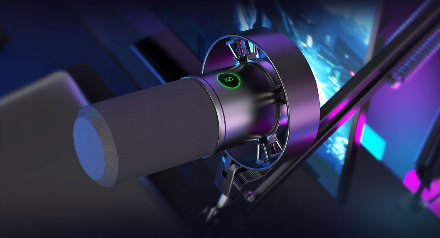 Внизу микрофона также есть две ручки для контроля микрофона и наушников. Преимущество того факта, что элементы управления находятся внизу, заключается в том, что они не будут мешать микрофону на буме (не входит в комплект). В нижней части также есть подключение наушников для прослушивания записи в режиме реального времени (наушники от 16 до 75 Ом). На фронте корпуса также есть сенсорная кнопка, чтобы отключить микрофон вместе со светодиодным индикатором с текущим состоянием работы микрофона. Набор включает в себя микрофон, USB -кабель, штатив Finena BM88 и анти -вибрационную корзину.