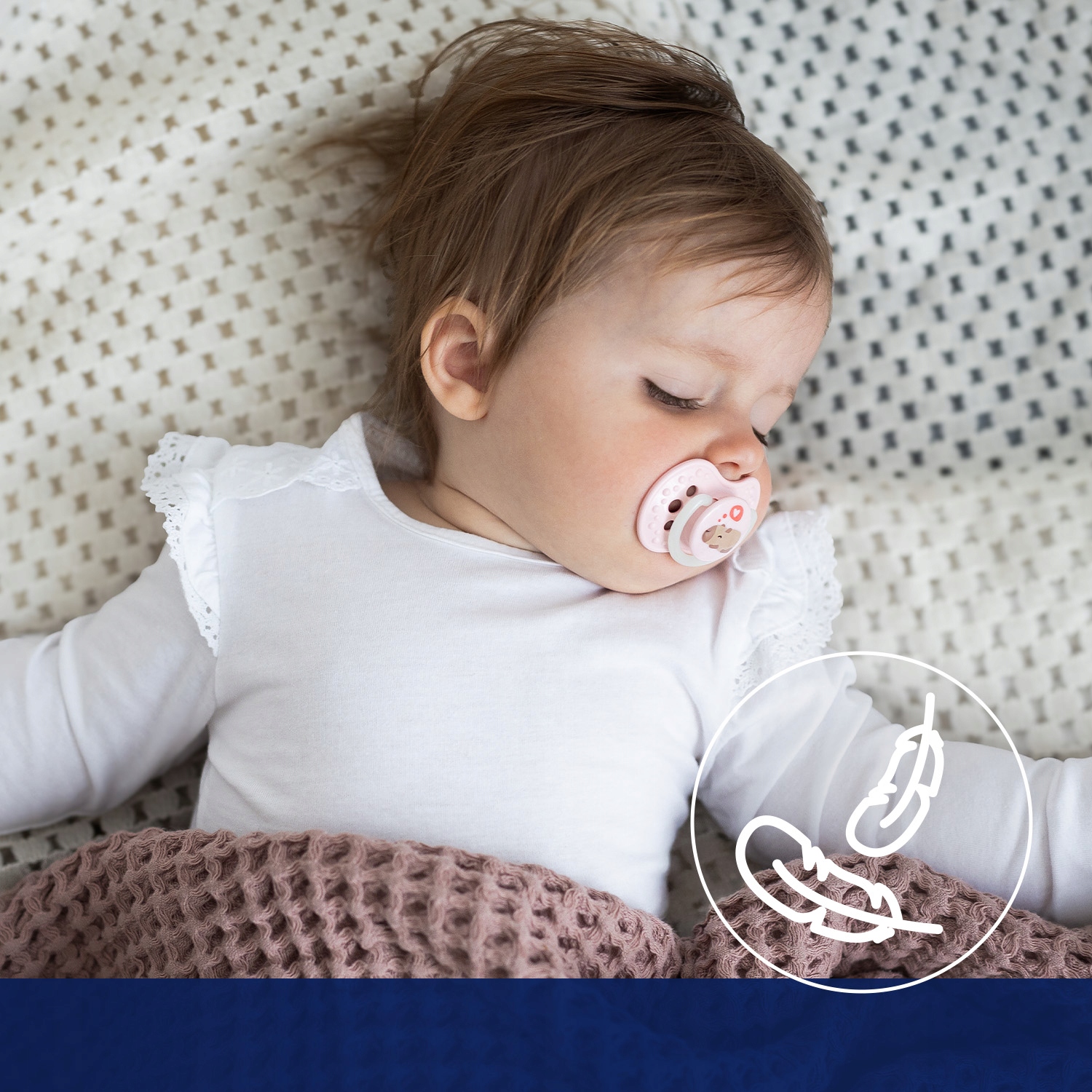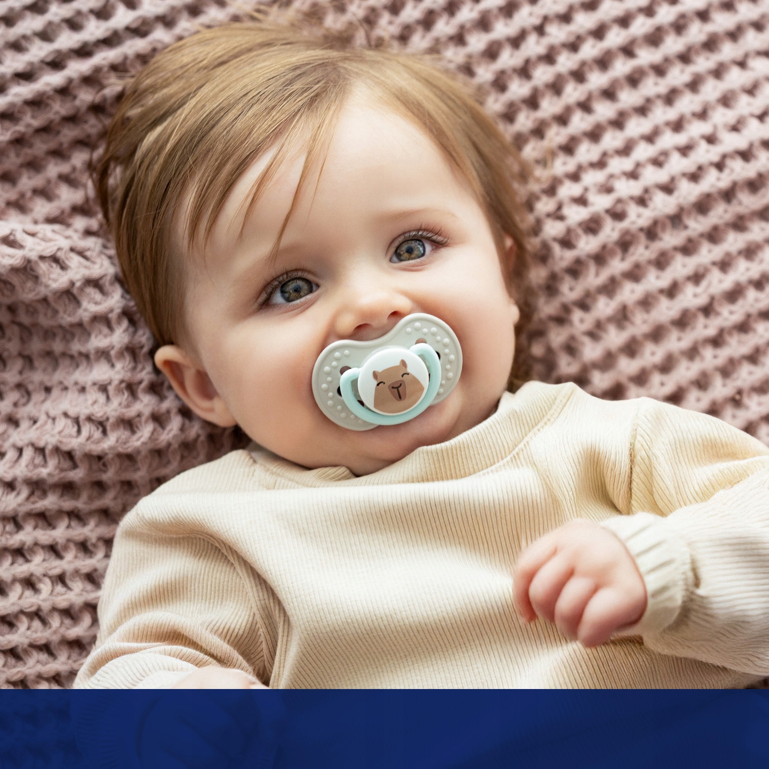 В возрасте 3-6 месяцев и до сих пор стандартный Lov Силиконовая структура различной толщины, она распространяется и сокращается в соответствии с ритмом сосания ребенка. Благодаря этому он защищает свой всасывающий рефлекс и не оказывает неблагоприятного влияния на грудное вскармливание. Поранйр имеет симметричную форму, вдохновленную формой соска, наполненного молоком, которая обеспечивает знакомые чувства, как с грудью.