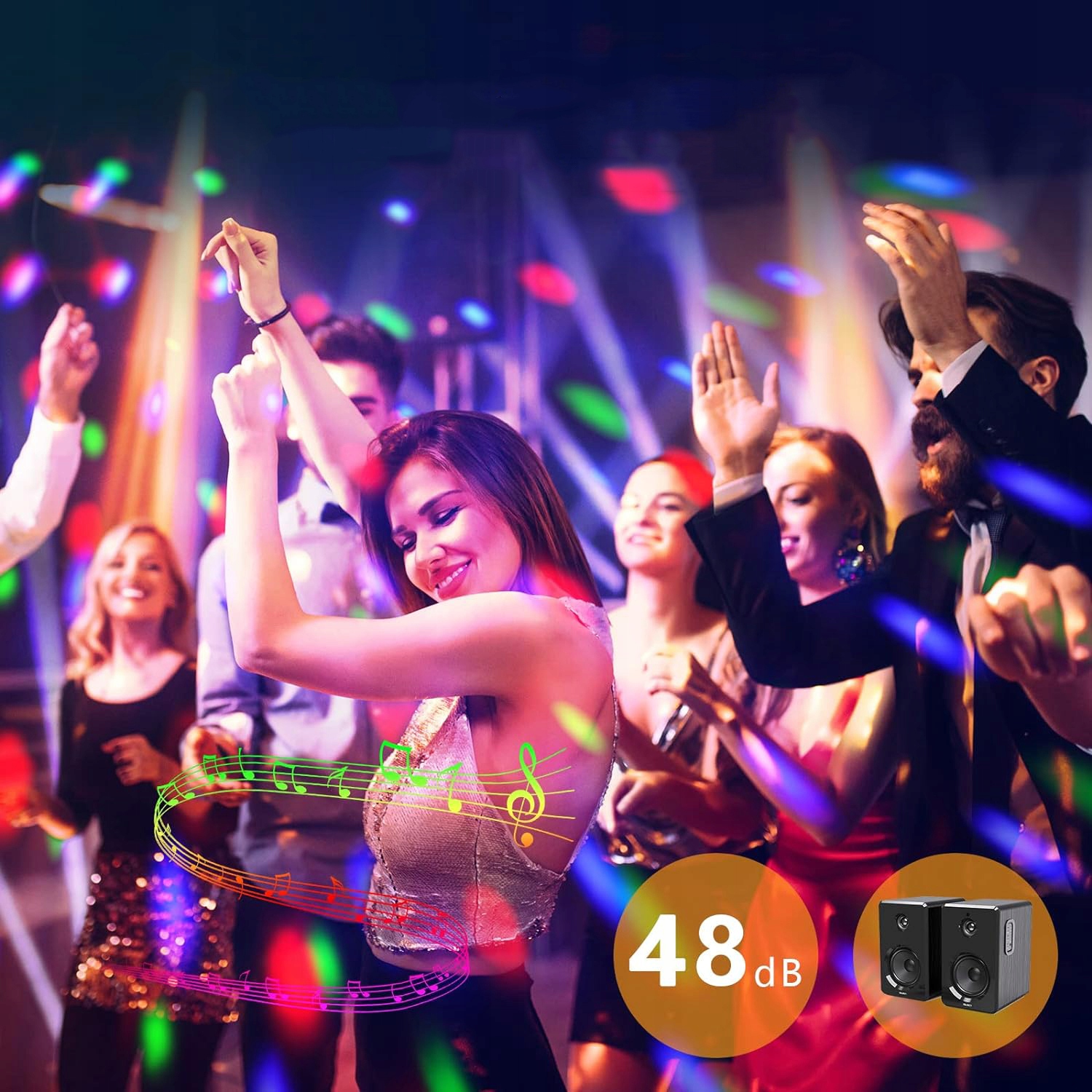 Свет дискотеки управляется с помощью пульта дистанционного управления, который позволяет эффективно использовать пульт дистанционного управления для выбора любимого света и режима. Поворотное на 360° основание оснащено присоской, которую можно прикрепить к любой гладкой поверхности или поставить на пол.