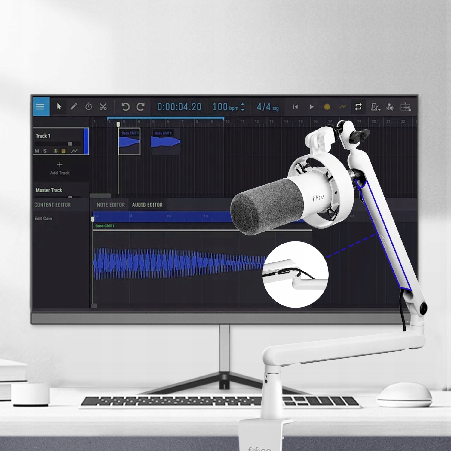 Благодаря встроенному ветрофильтру минимизируется влияние взрывных звуков, что крайне важно при записи вокала. Амортизирующее противоударное крепление эффективно гасит механические вибрации, устраняя нежелательные низкочастотные вибрации, возникающие в результате движений стола или держателя микрофона. В комплект входит динамический микрофон с противоударным креплением, кабель USB-C длиной 2,5 м, переходник с 5/8" на 3/8" и руководство пользователя. Обратите внимание, что для подключения XLR требуется специальный кабель XLR-XLR, а функции управления доступны только при подключении USB. Fifine K688 белого цвета — идеальный выбор для тех, кто ищет универсальный микрофон для записи высочайшего качества.