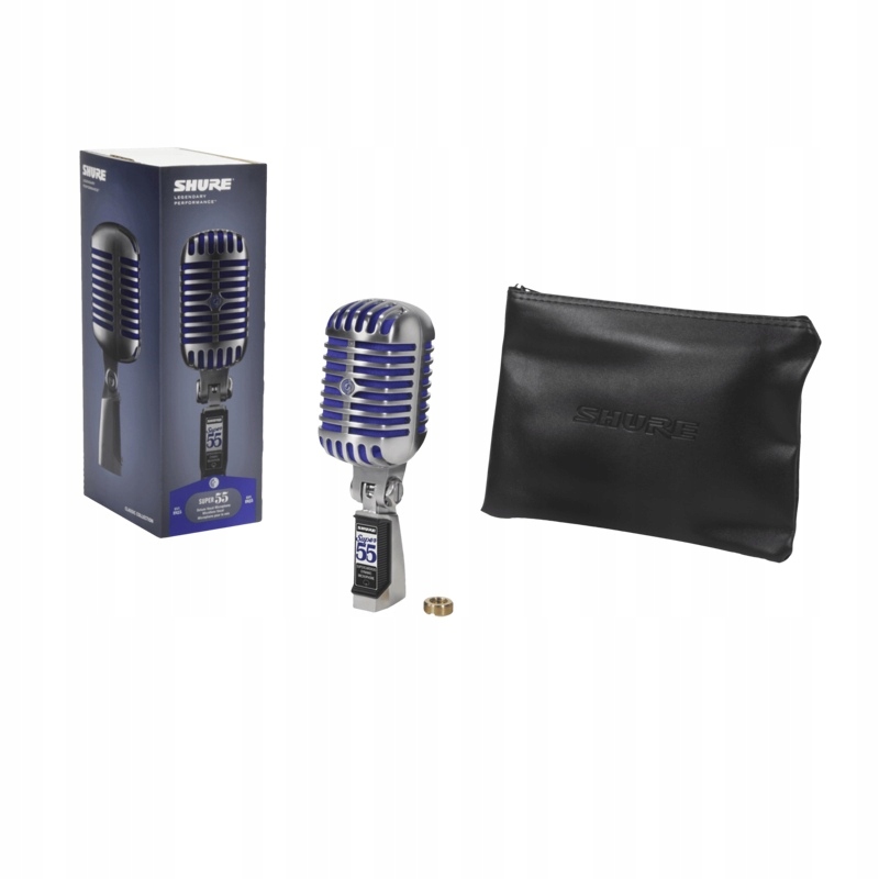Shure Super 55 — динамический вокальный микрофон с суперкардиоидной характеристикой, сочетающий в себе легендарный внешний вид модели 55 Sh с современными техническими решениями. Микрофон оснащен встроенным штативом с регулируемым углом наклона. Модель Super 55 предназначена специально для вокальных приложений, связанных с живыми выступлениями на сцене или сессиями записи в студии, а также везде, где необходим классический микрофон на стойке. От модели 55 SH отличается более новым суперкардиоидным преобразователем и синей сеткой.
