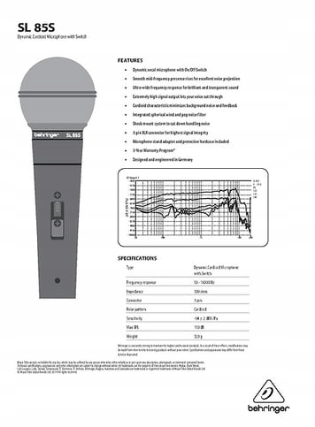 Behringer SL 85S - динамический кардиоидный микрофон с переключателем.