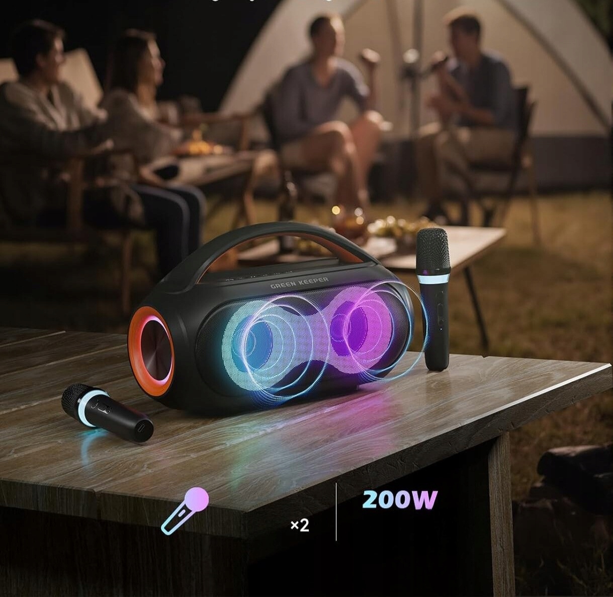 Bluetooth -динамик караоке зеленый Keper GKD30 200W 2 светодиодные микрофоны Bluetooth