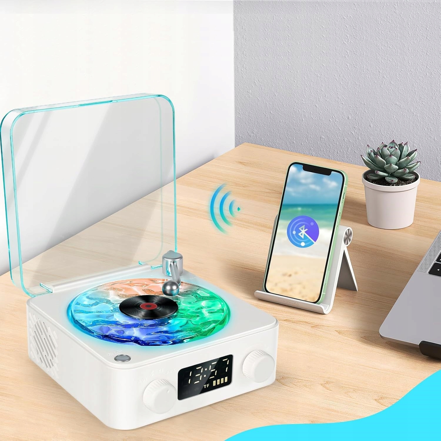 ✨wielofunkcyjny gramofon? С нашими поворотными волнами вы выслушаете свою любимую музыку (через Bluetooth), голос Nature , и вы будете восхищаться красивым Light . Он также имеет функцию часов и выбор света .