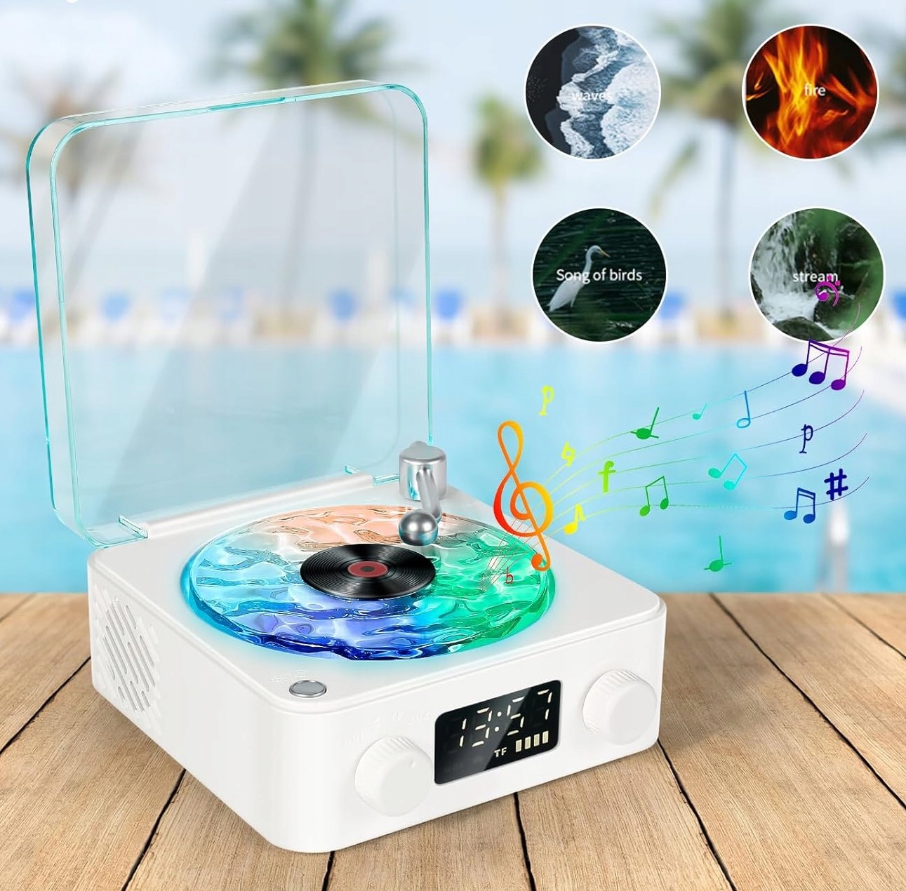 ✨wielofunkcyjny gramofon? С нашими поворотными волнами вы выслушаете свою любимую музыку (через Bluetooth), голос Nature , и вы будете восхищаться красивым Light . Он также имеет функцию часов и выбор света .