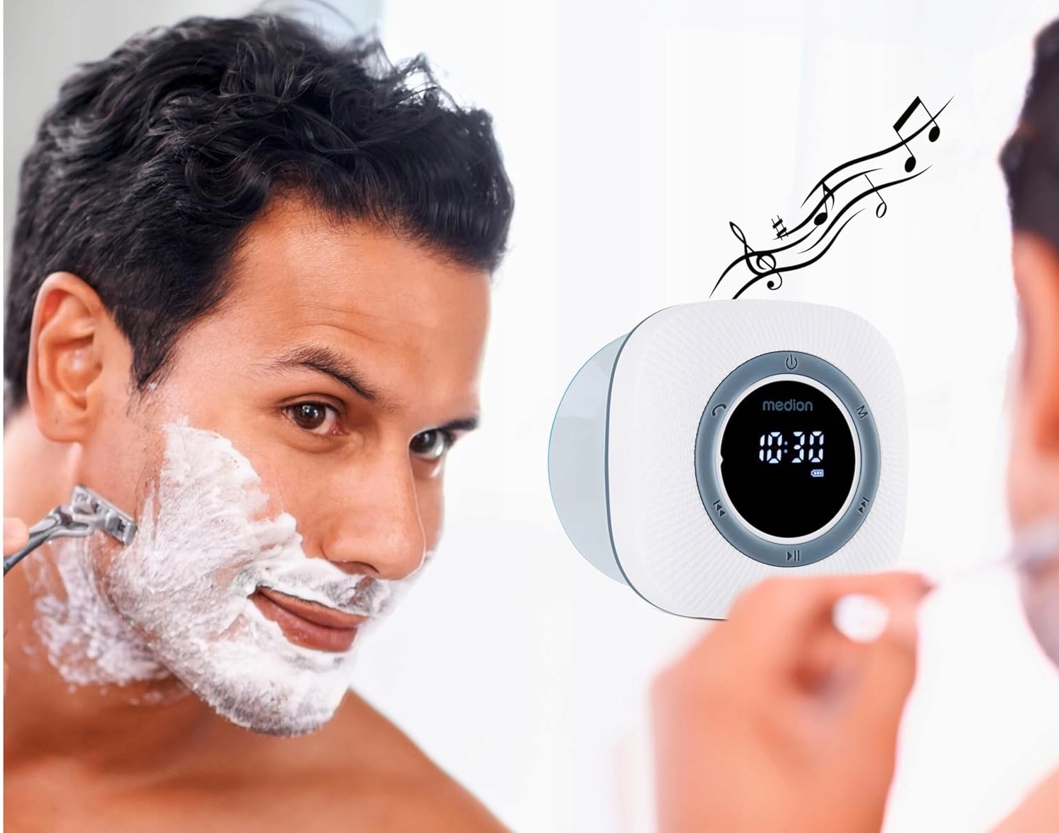 Спасибо Medion Life S66884, вы можете начать день в живом настроении в душе. устойчивое к блюднизу Bluetooth Radio позволяет прием радиостанций FM и Belless , играя ваши любимые песни непосредственно со смартфона. Благодаря High Authoration Lifce до двенадцати часов вы можете взять с собой устройство после купания и использовать его в другом месте.