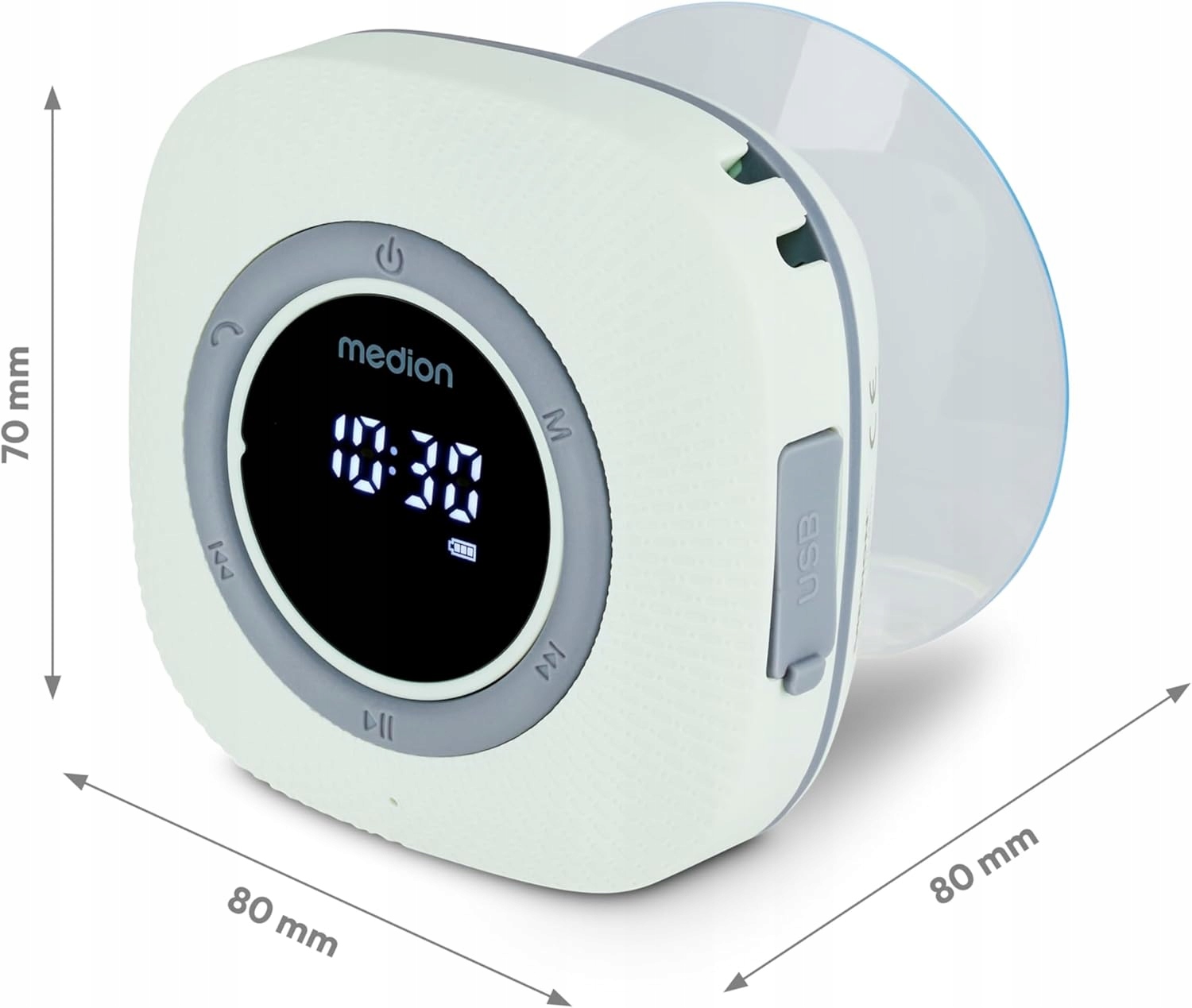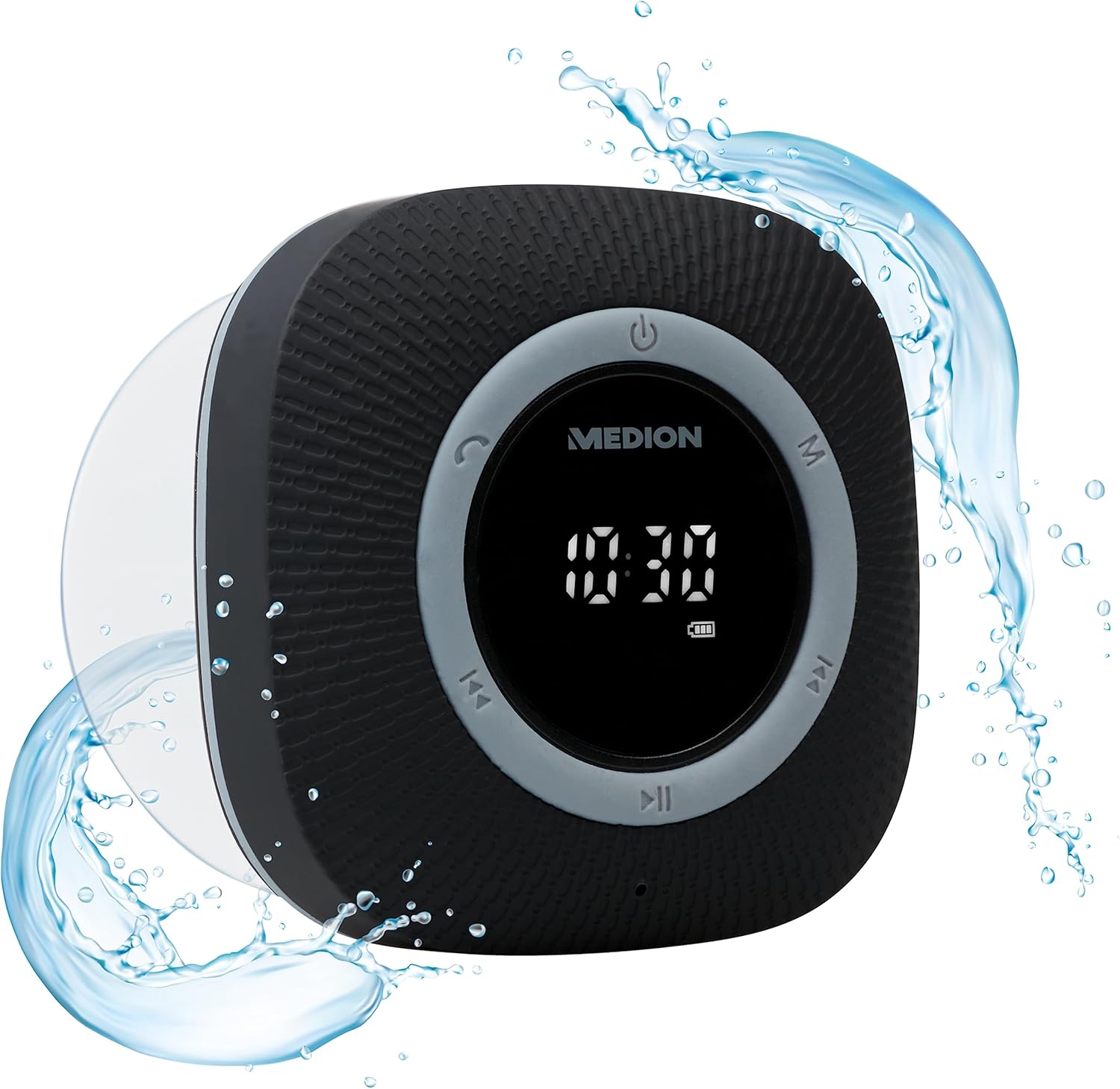 Medion MD43881 Dower оснащен Radio FM. благодаря этому решению, можно прослушать текущие новости и любимые станции, без необходимости подключить смартфон во время купания. Водонепроницаемый индекс IPX6 позволяет использовать динамик в других местах, где другие динамики не будут справляться.