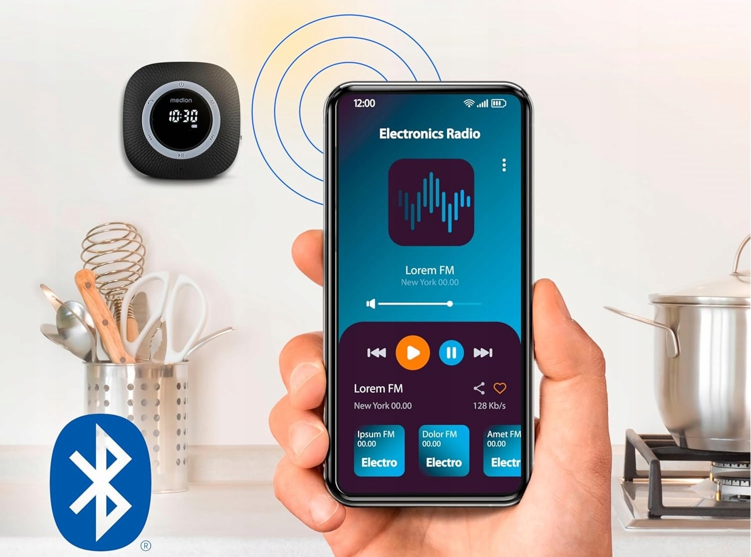 динамик Bluetooth в ванной комнате с FM -радио, водостойким для Medion MD43881 h1> Новый продукт, от продажи склада h2>