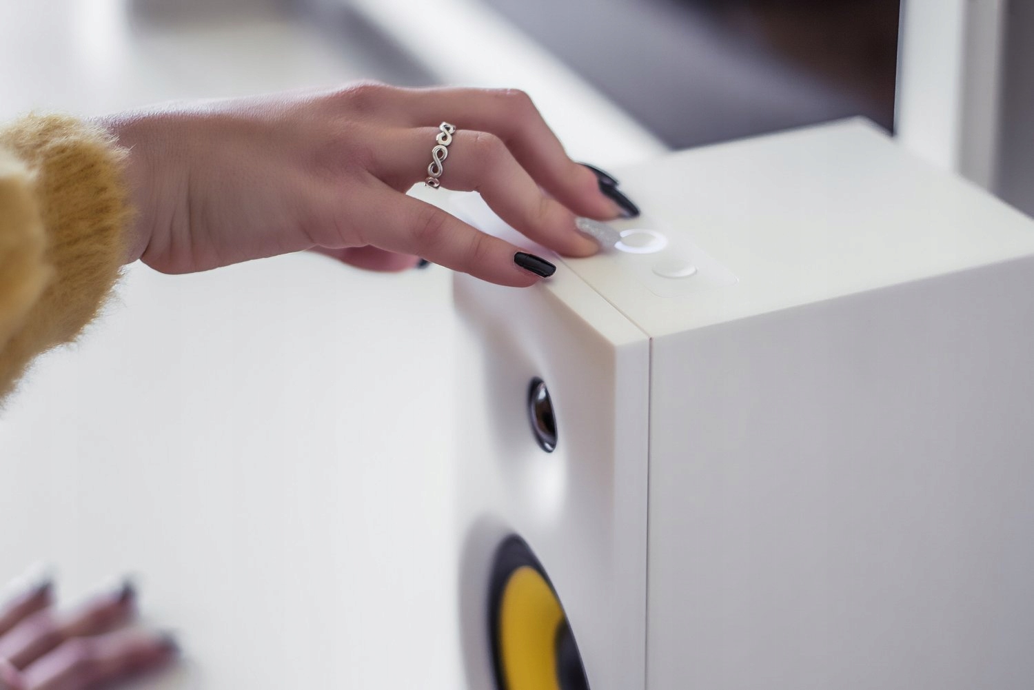 Edifier R1080BT доступен в двух цветах — черном и белом. Помимо видимой разницы в цвете корпуса, вариант белого цвета имеет яркий желтый акцент на низкочастотном динамике. Людям, которые предпочитают иметь дома акустическую систему, которая хорошо звучит и в то же время выделяется, следует выбрать белую версию.