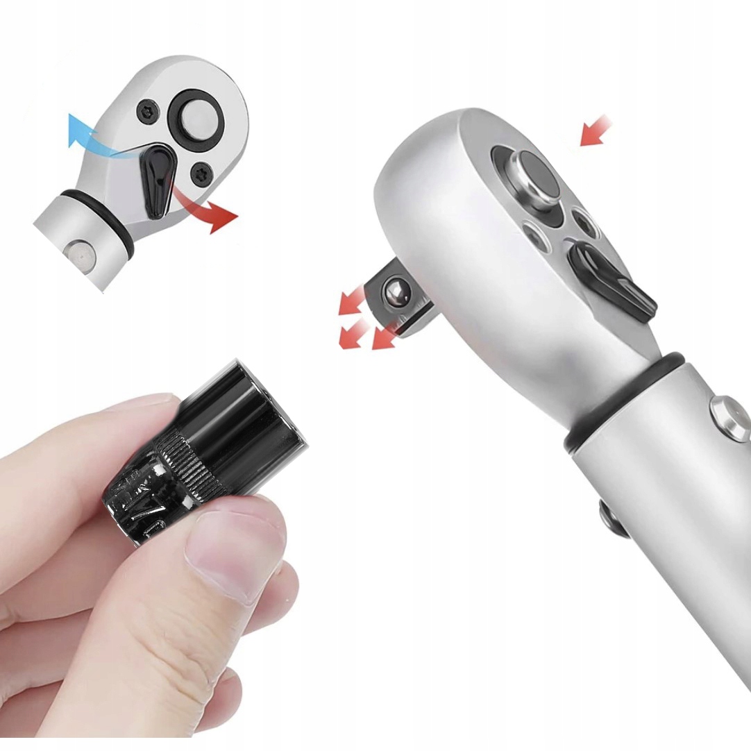 Инструмент с динамометрическим ключом идеально подходит для ослабления и затягивания различных типов винтовых соединений. Многофункциональный ключ с трещоткой идеально подойдет для работ, требующих точности и внимательности, а также для повседневной работы с квадратными и шестигранными винтами, мотоциклетными гайками и крючками.