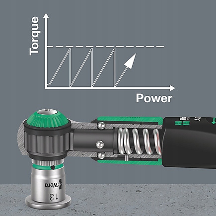 Динамометрический ключ SafeTorque с 72 зубьями и небольшим рабочим углом всего 5°. Маленький ход обеспечивает быструю и точную работу во всех положениях.