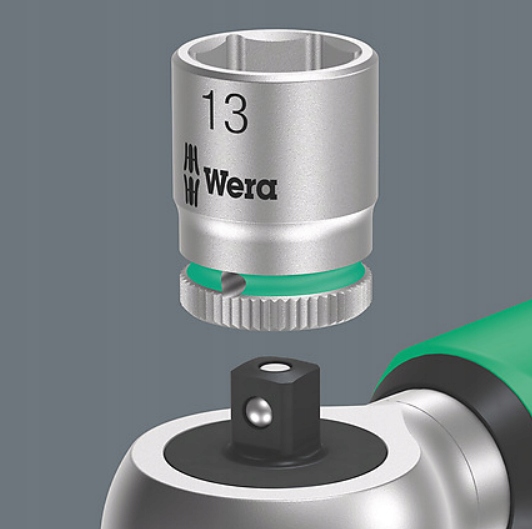- Шариковая защелка обеспечивает надежное крепление торцевых ключей и аксессуаров, а значит, безопасность при завинчивании