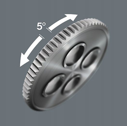 Храповой механизм с мелкими зубьями и 72 зубьями обеспечивает малый угол возврата собачки, составляющий всего 5°.